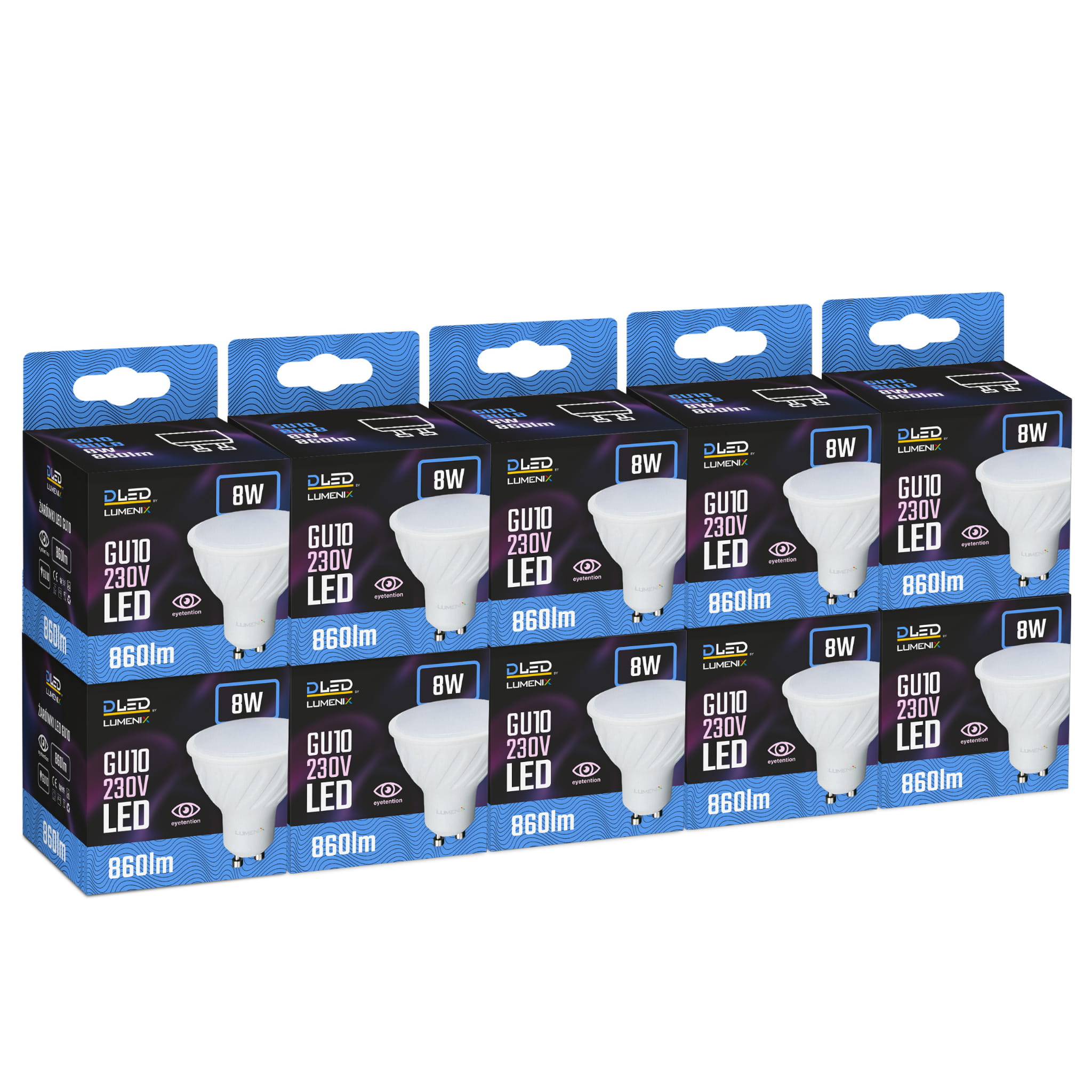 10x Żarówka LED GU10 860lm 8W CCD