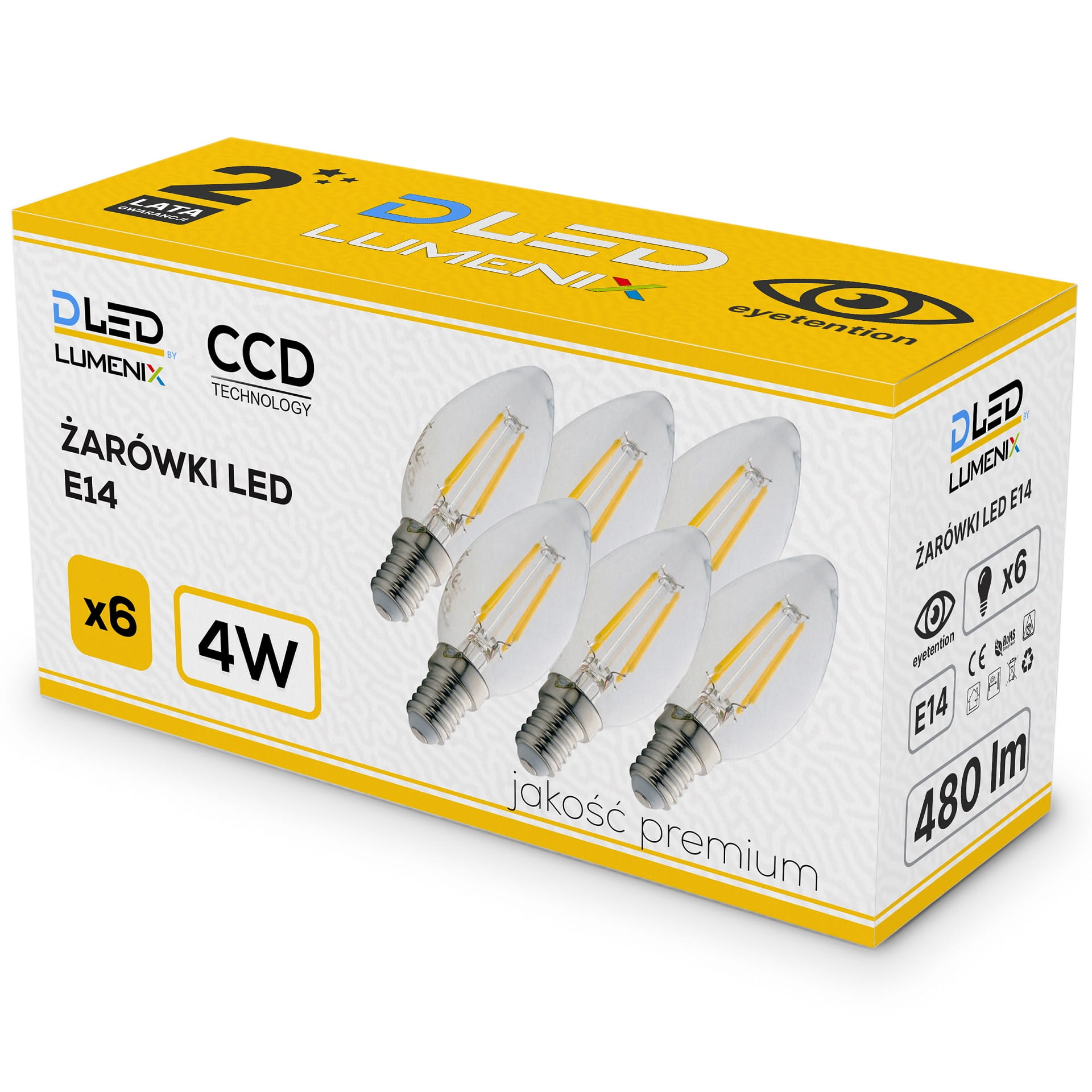 6x Żarówka LED E14 4W świeca filament