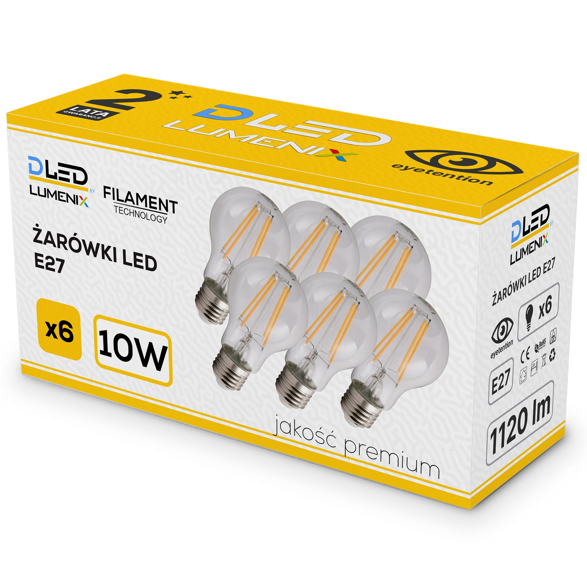 6x Żarówka E27 LED 1120lm 10W filament