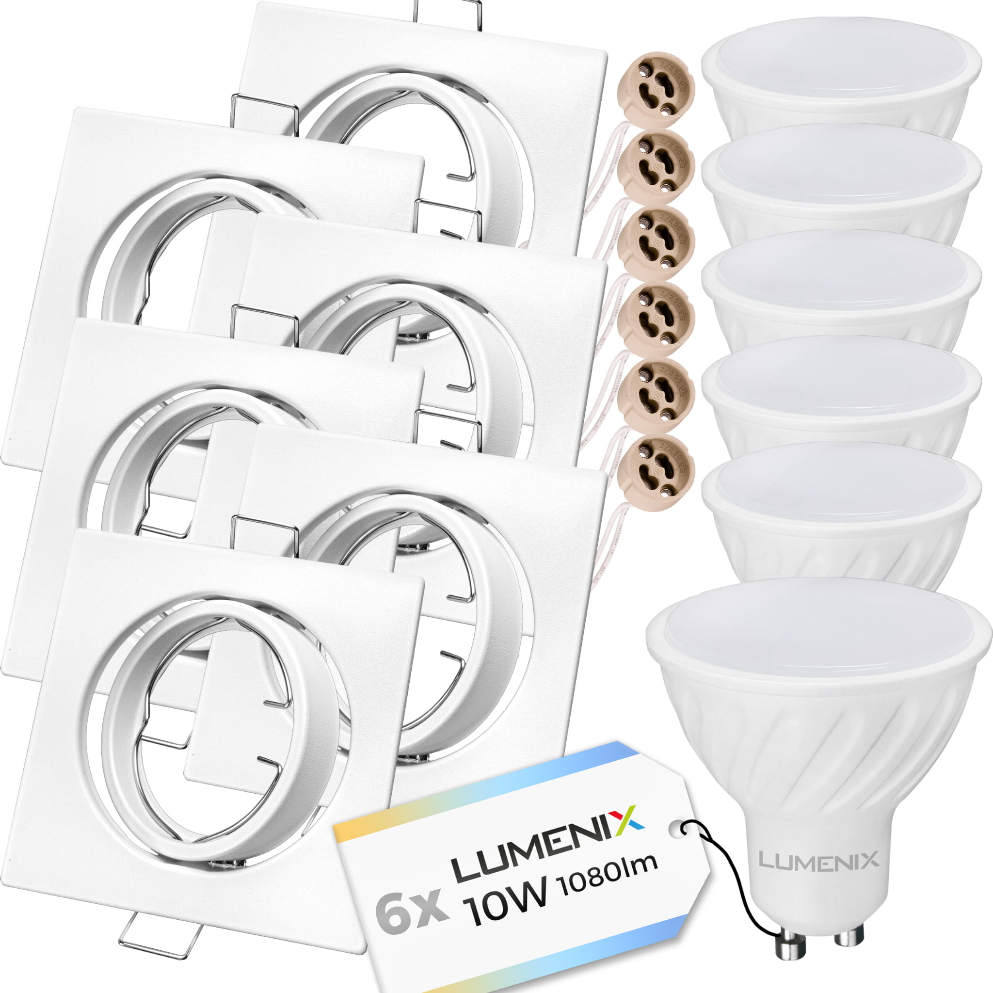 6x Zestaw oprawa kwadratowa biała + GU10 10W + gniazdo GU10