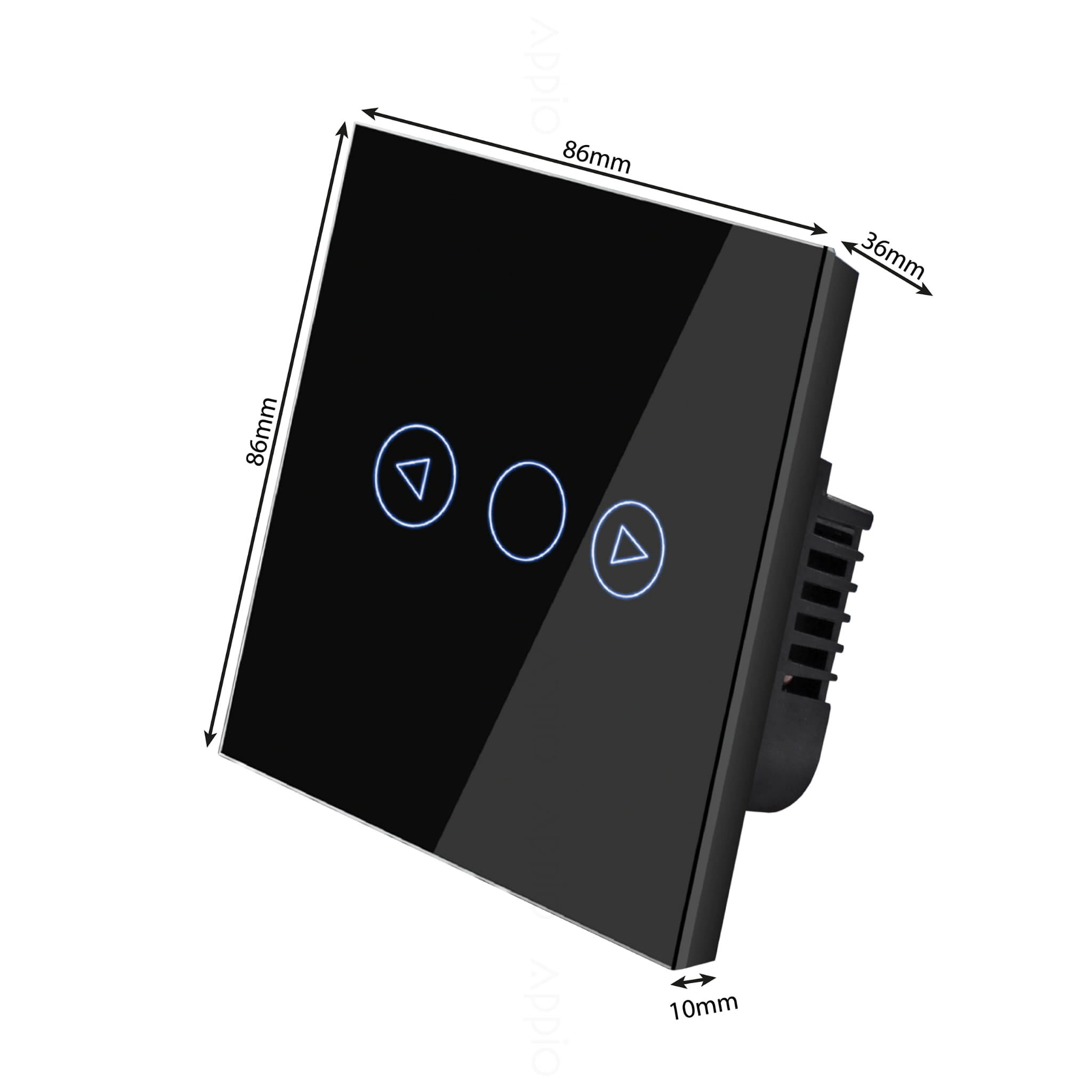 Panel zostały wykony ze wzmocnionego szkła, odpornego na odbarwienia. Powierzchnia łatwa w czyszczeniu. Element dotykowy jest bardzo czuły, gdy jest wyłączony podświetla się na niebiesko. Włącznik pasuje do standardowej puszki okrągłej 60 mm. Możliwość sterowania światłem za pomocą aplikacji na telefon (m.in. Tuya Smart).