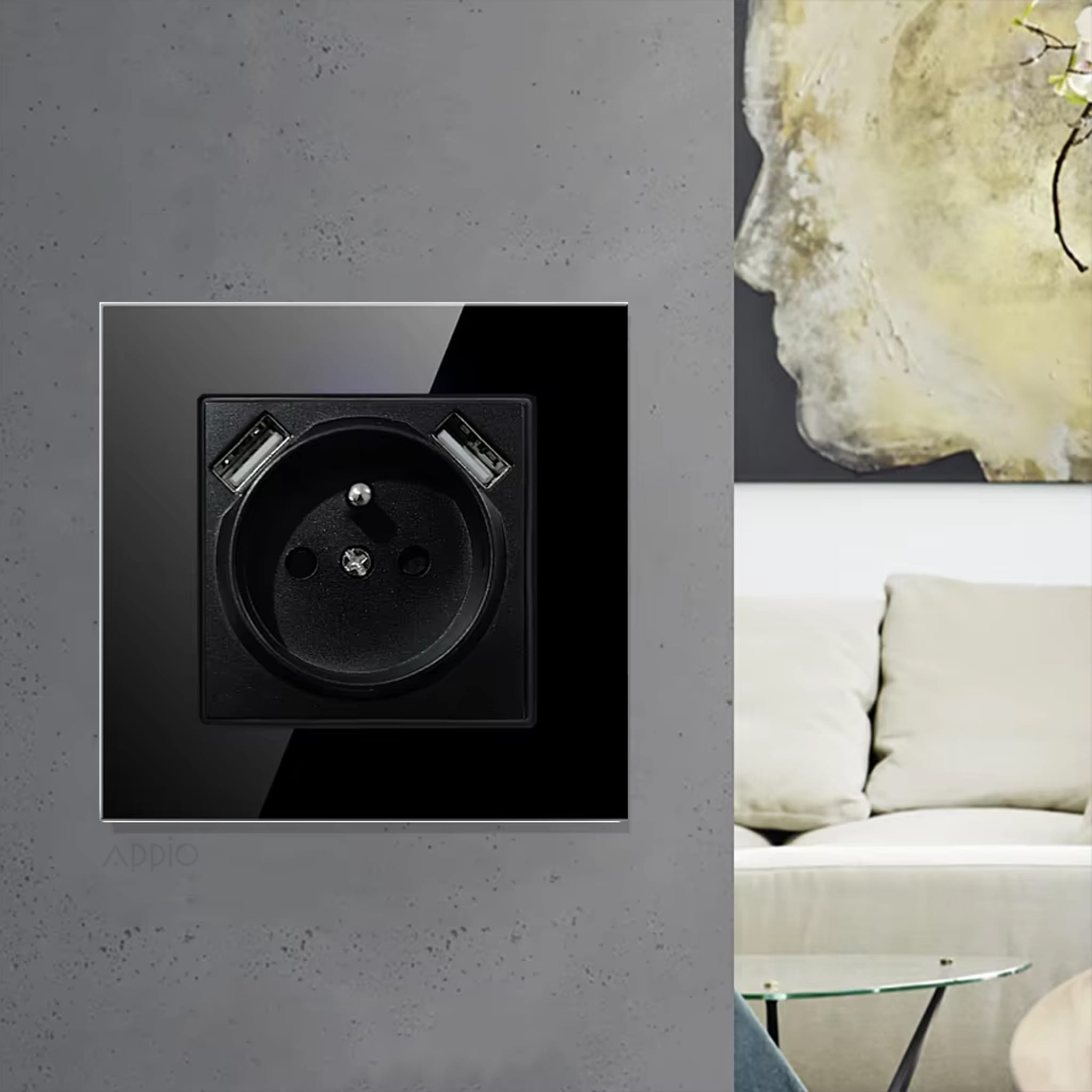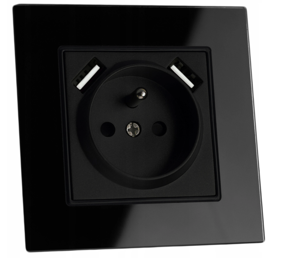 Kontakt Gniazdo Elektryczne Z Bolcem Szklane Pojedyncze Czarne 2x USB fi60