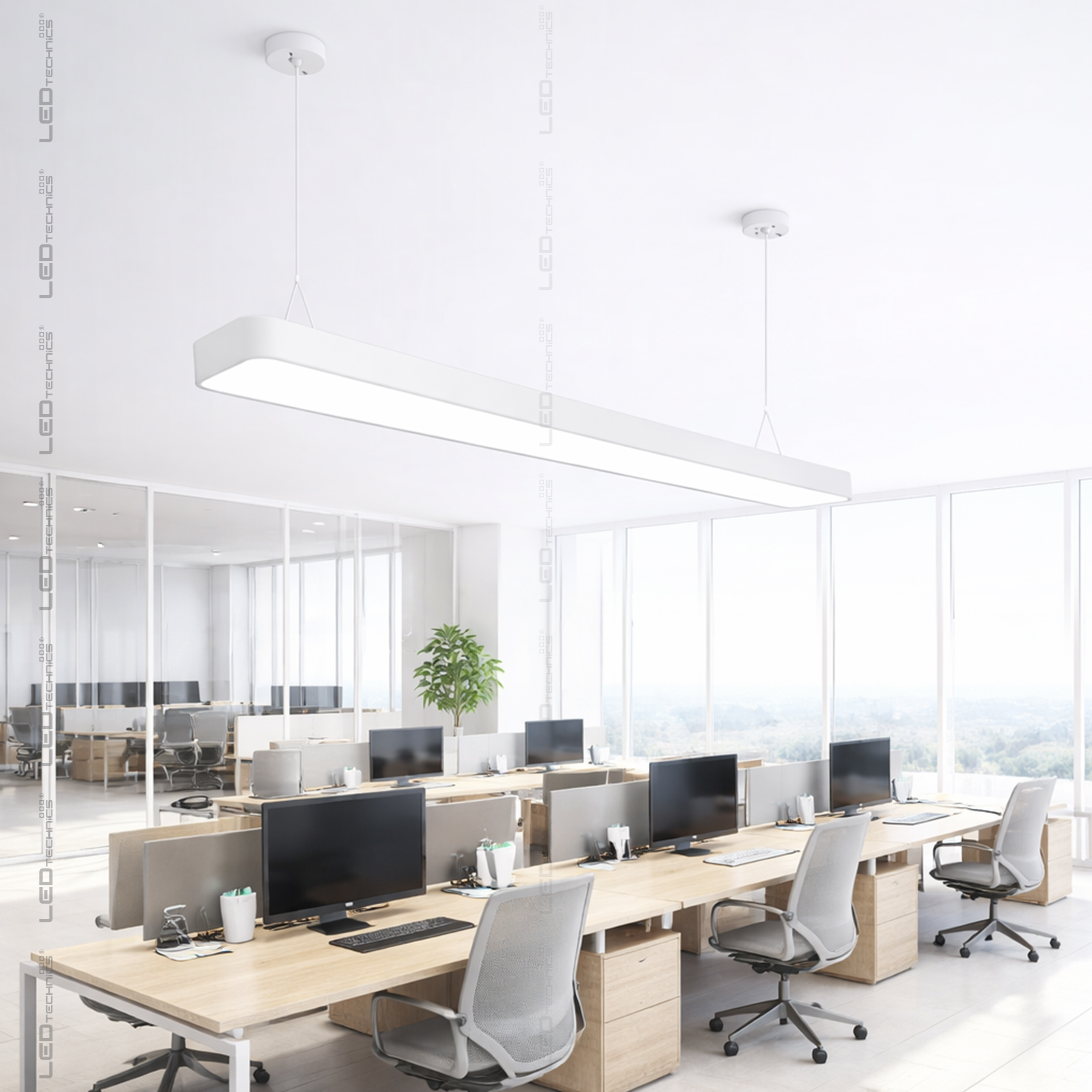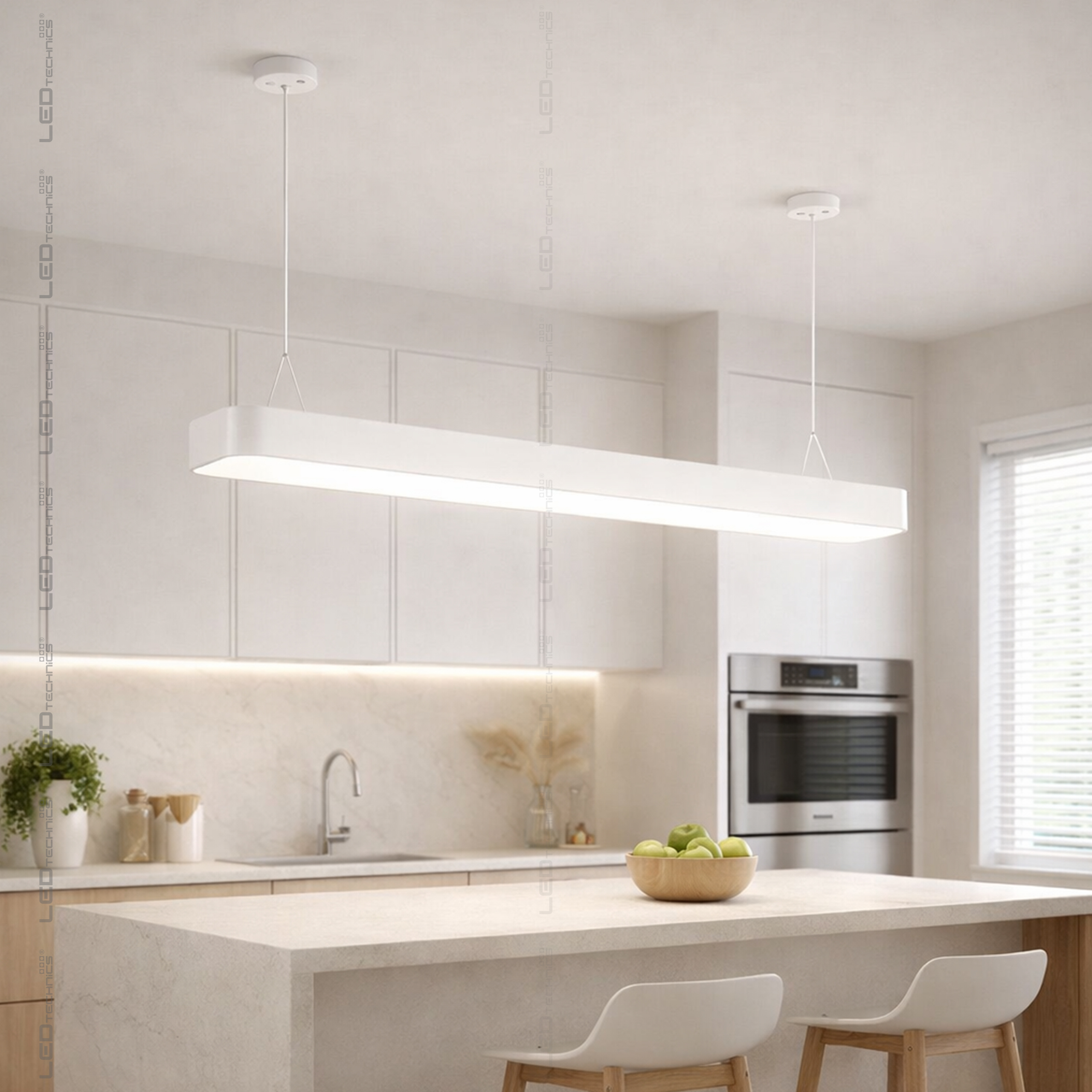 Lampa Wisząca Liniowa Biurowa 120cm 50W LED CCD Biała Zaokrąglona