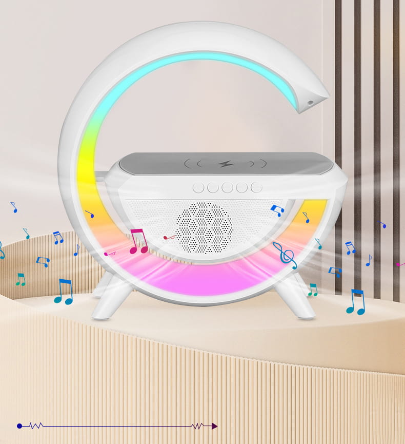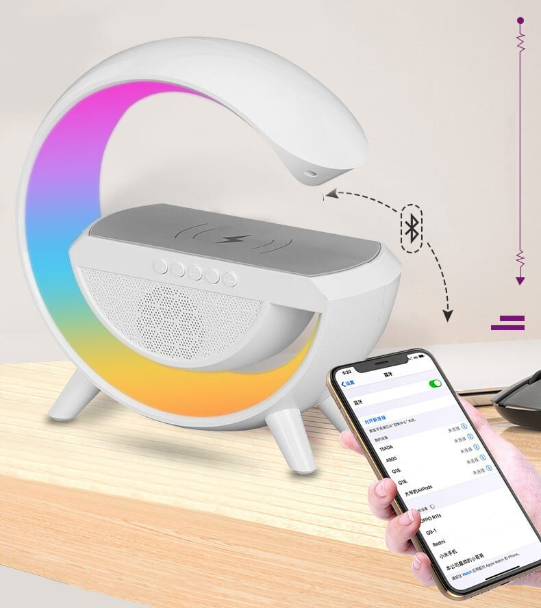 Inteligentna wielofunkcyjna lampka LED RGB z bezprzewodową ładowarką QI oraz głośnikiem Bluetooth
