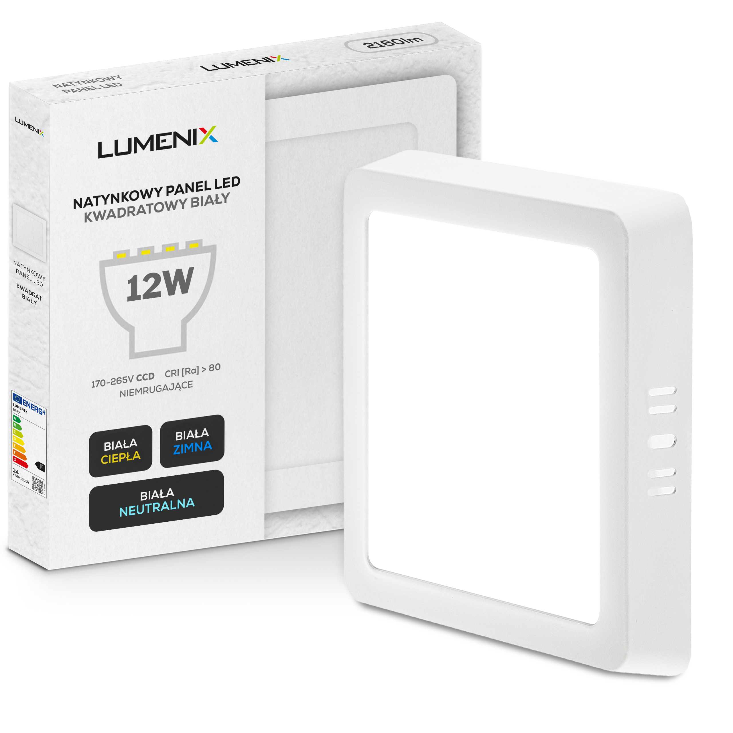 Panel LED natynkowy kwadratowy 1080lm 12W CCD