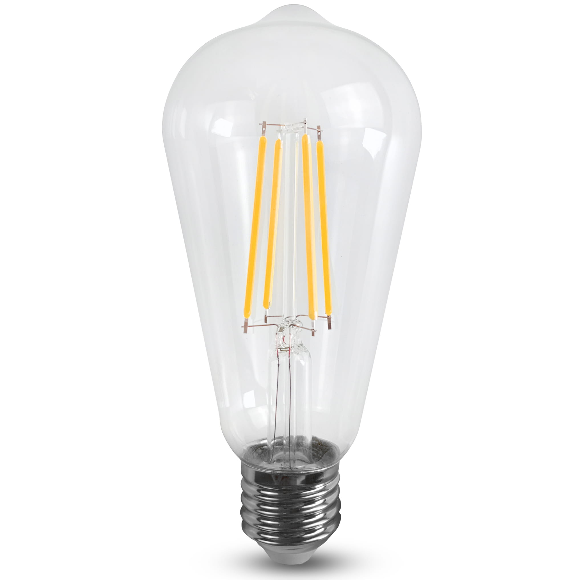 Nowe żarówki z diodą filament dają nowe spojrzenie na oświetlenie LED. Ta przełomowa konstrukcja zawiera włókna LED przypominające tradycyjne włókna żarowe. Żarówka posiada ozdobny kształt i dekoracyjny desing. Idealnie wpasowuje się w oprawy lamp pomieszczeń o wystroju typu: loft/ vintage/ retro/ industrial.