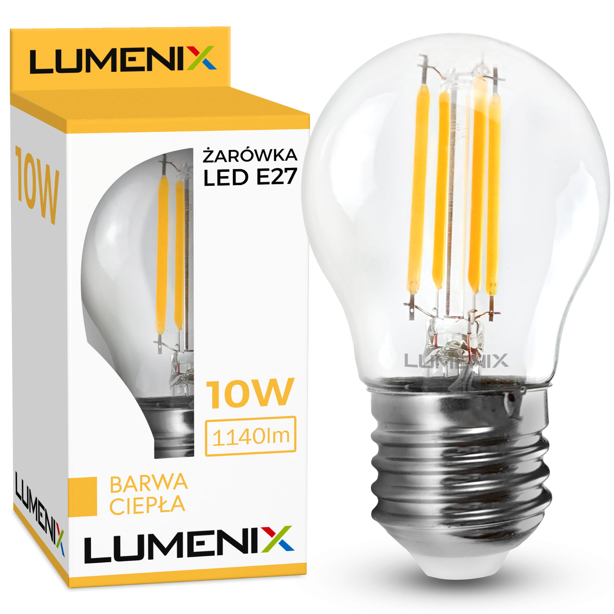 Żarówka LED E27 Filament 10W 230V to nowoczesne i energooszczędne źródło światła, które łączy klasyczny wygląd tradycyjnej żarówki z zaletami technologii LED. Zastosowanie diod LED typu filament zapewnia równomierne, przyjemne dla oka światło bez migotania, a także wysoką skuteczność świetlną przy niskim zużyciu energii.