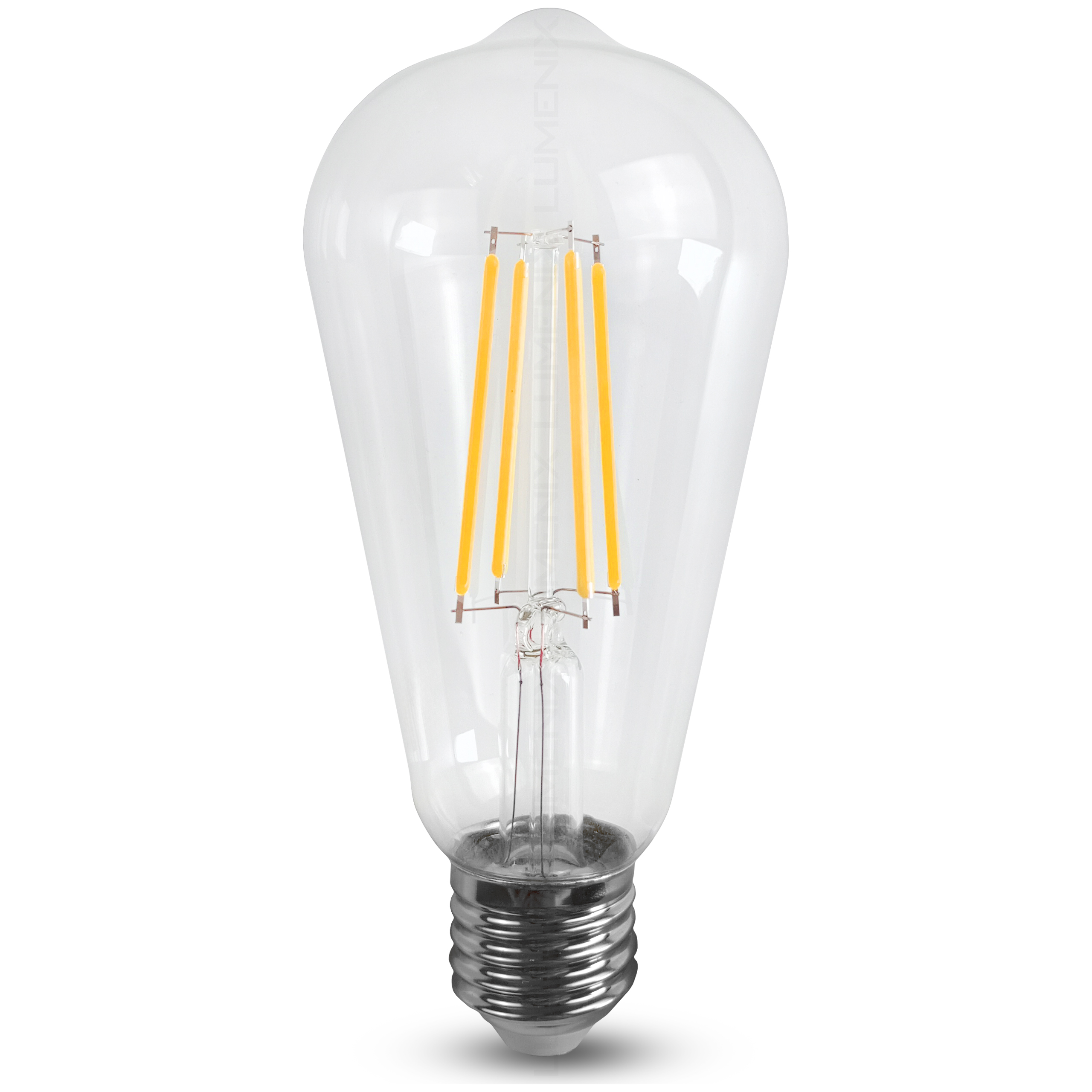 Nowe żarówki z diodą filament dają nowe spojrzenie na oświetlenie LED. Ta przełomowa konstrukcja zawiera włókna LED przypominające tradycyjne włókna żarowe. Żarówka posiada ozdobny kształt i dekoracyjny desing. Idealnie wpasowuje się w oprawy lamp pomieszczeń o wystroju typu: loft/ vintage/ retro/ industrial.