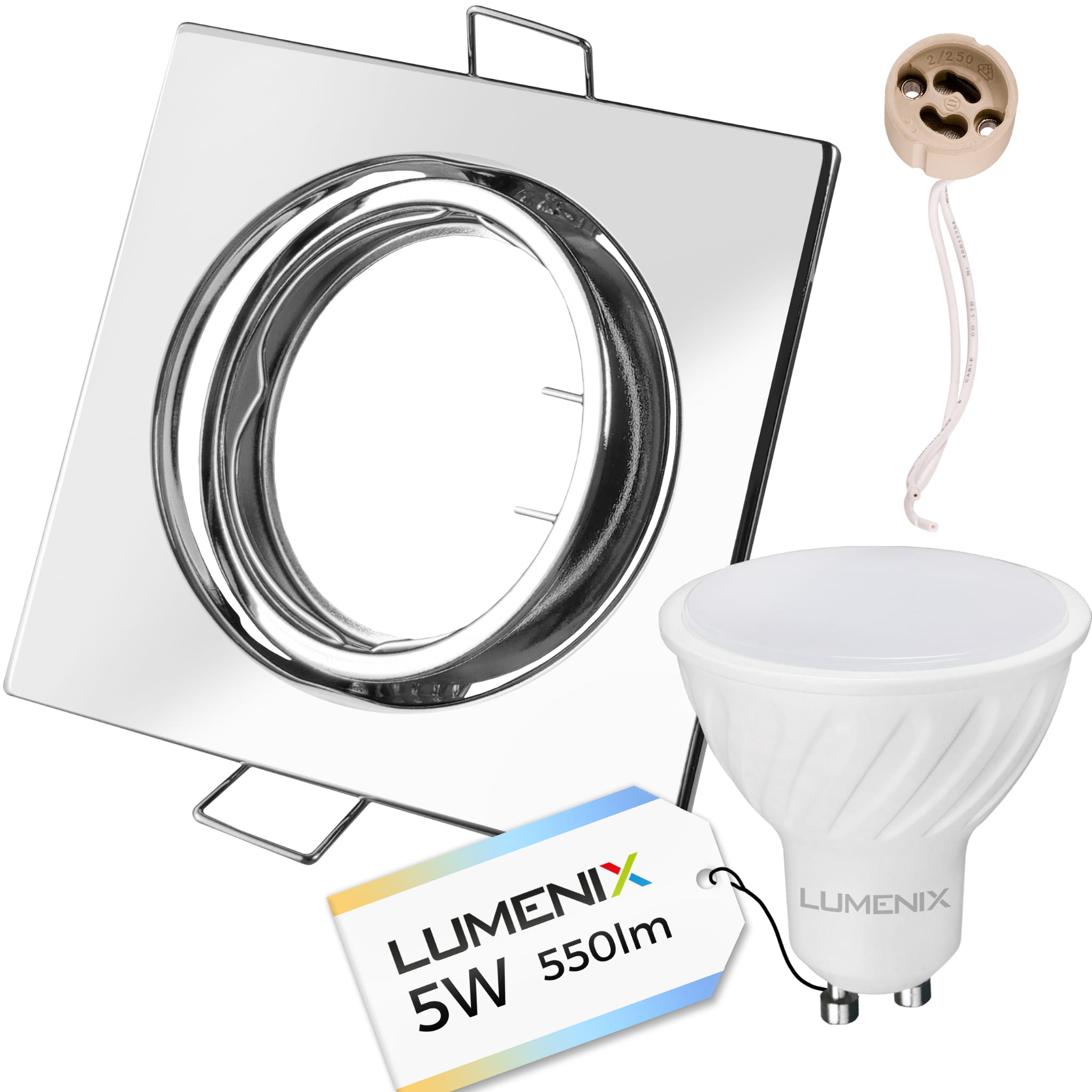 Zestaw oprawa kwadratowa chromowa + GU10 5W + gniazdo GU10