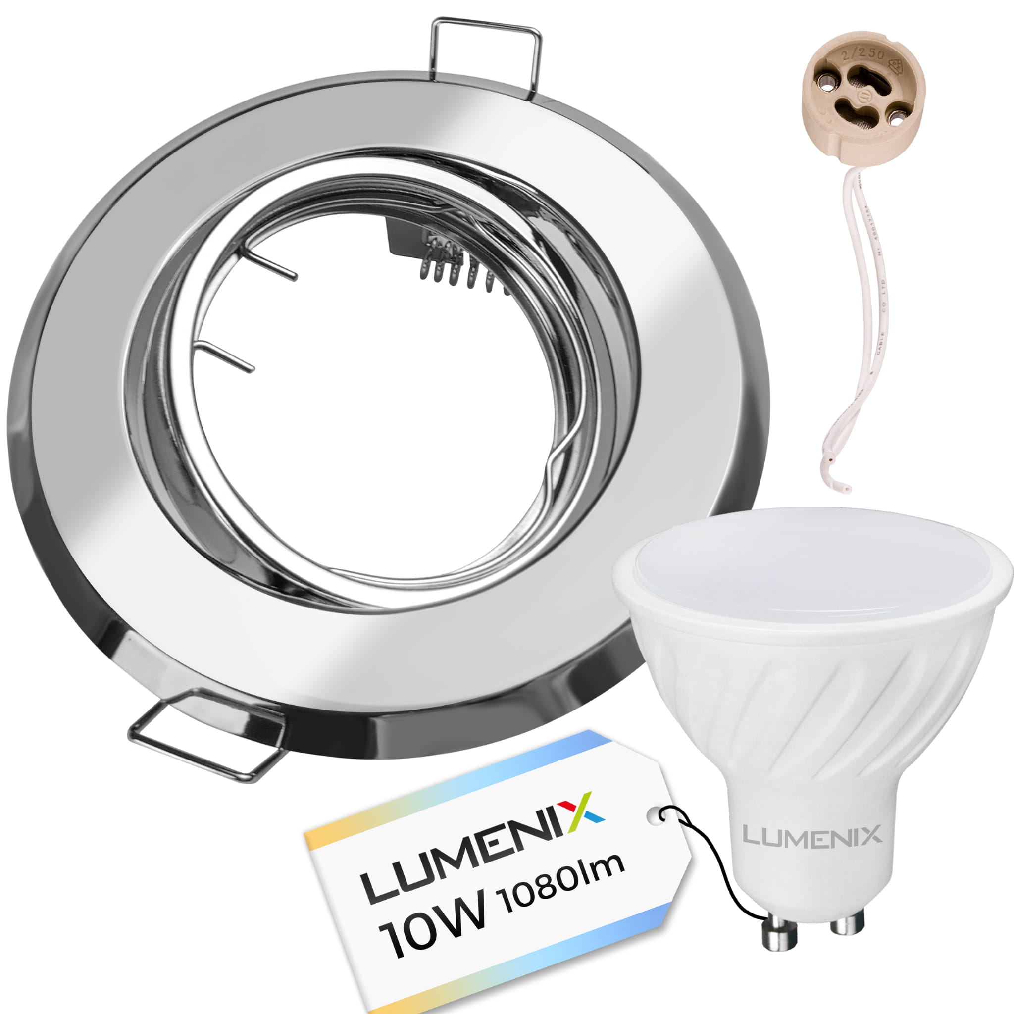 Zestaw oprawa okrągła chromowa + GU10 10W + gniazdo GU10