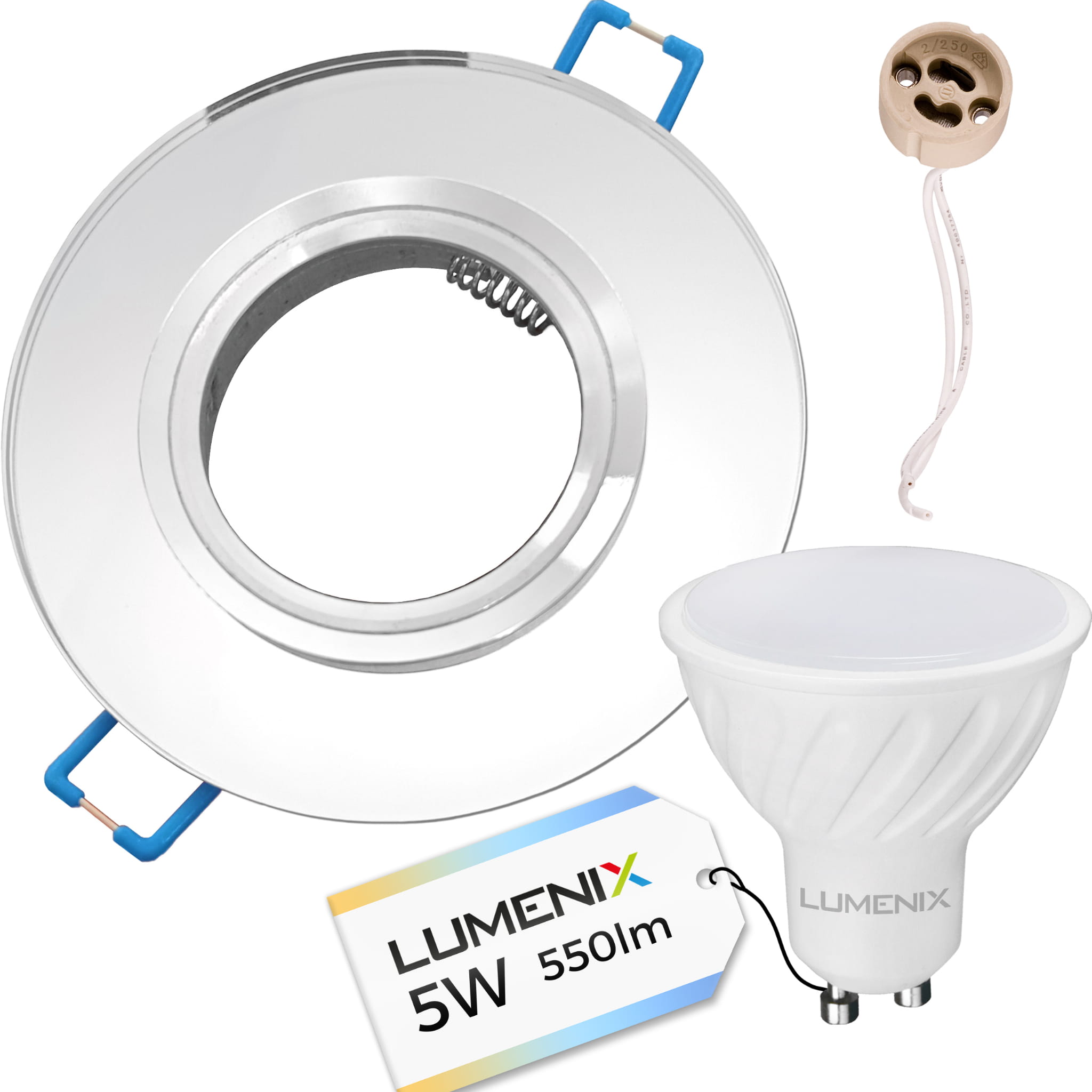 ZESTAW ŻARÓWKA LED GU10 5W + OPRAWA SZKLANA / LUSTRO OKRĄGŁA + GNIAZDO