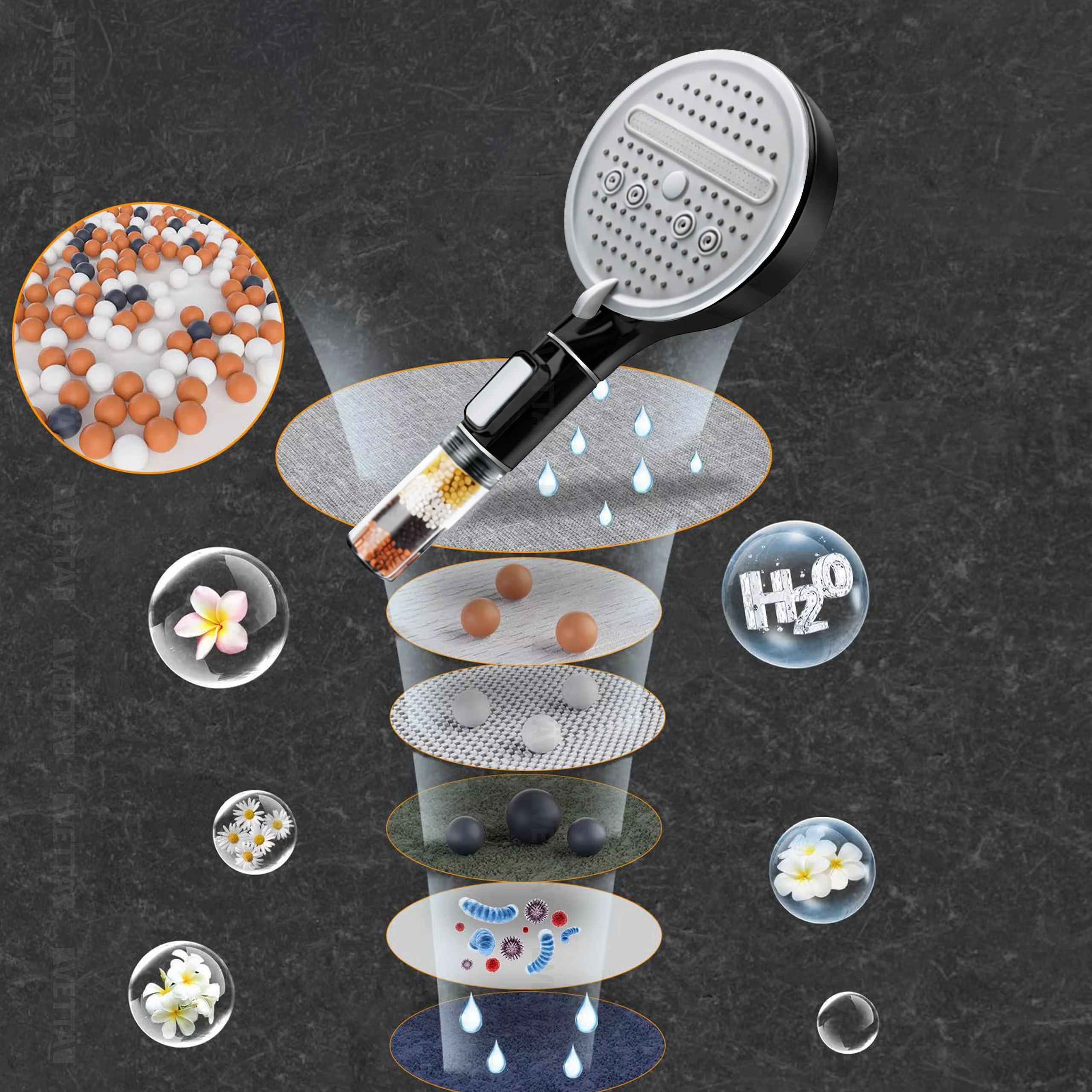 Słuchawka Prysznicowa Wysokociśnieniowa 3 Tryby Oszczędna Filtr Jonizujący
