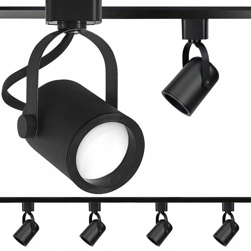 Zestaw 4x SPOT REFLEKTOR RUCHOMY CZARNY NA GU10 + SZYNOPRZEWÓD Szyna 1,5m