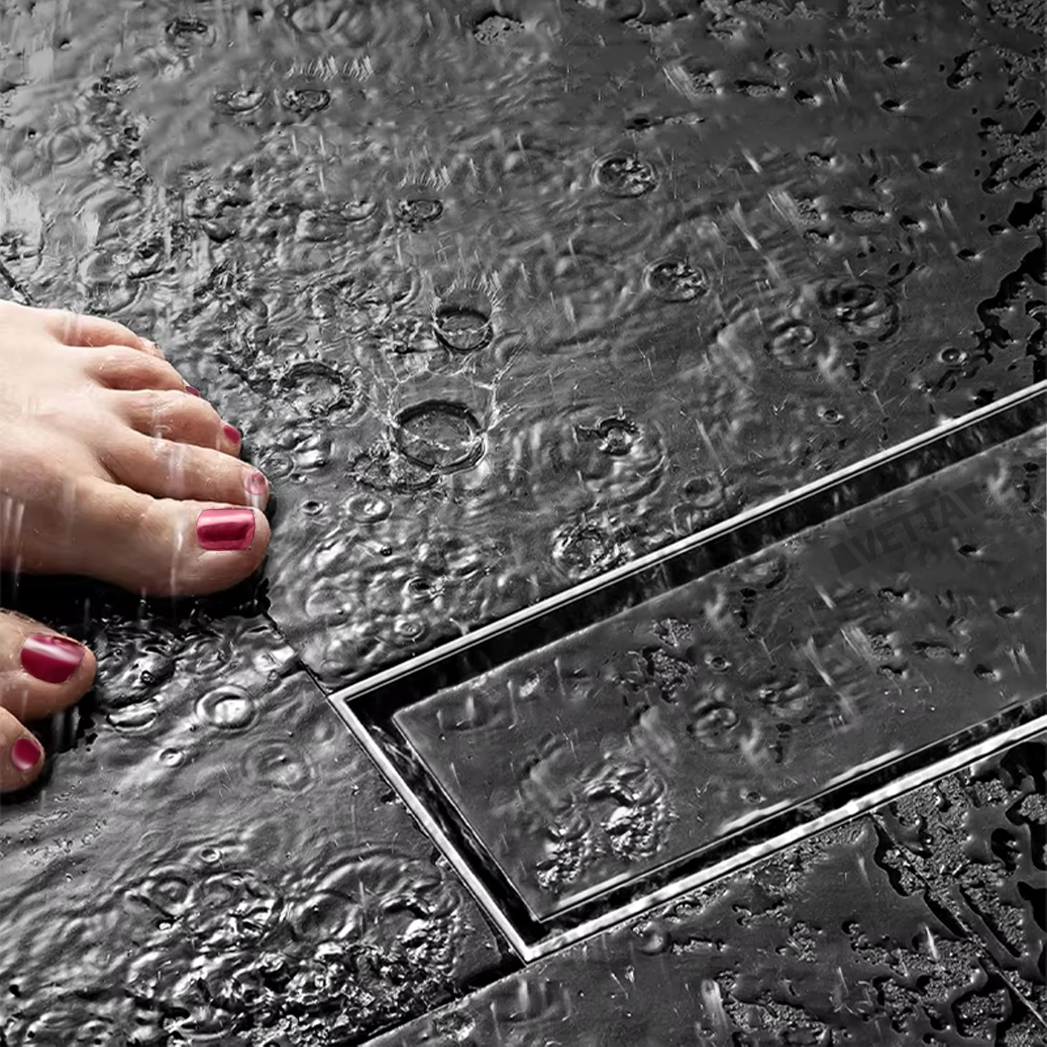 - Wysokiej klasy stal nierdzewna typu 304 sprawia, że odpływ jest odporny na uszkodzenia i zanieczyszczenia, co zapewnia długotrwałą wydajność i niezawodność