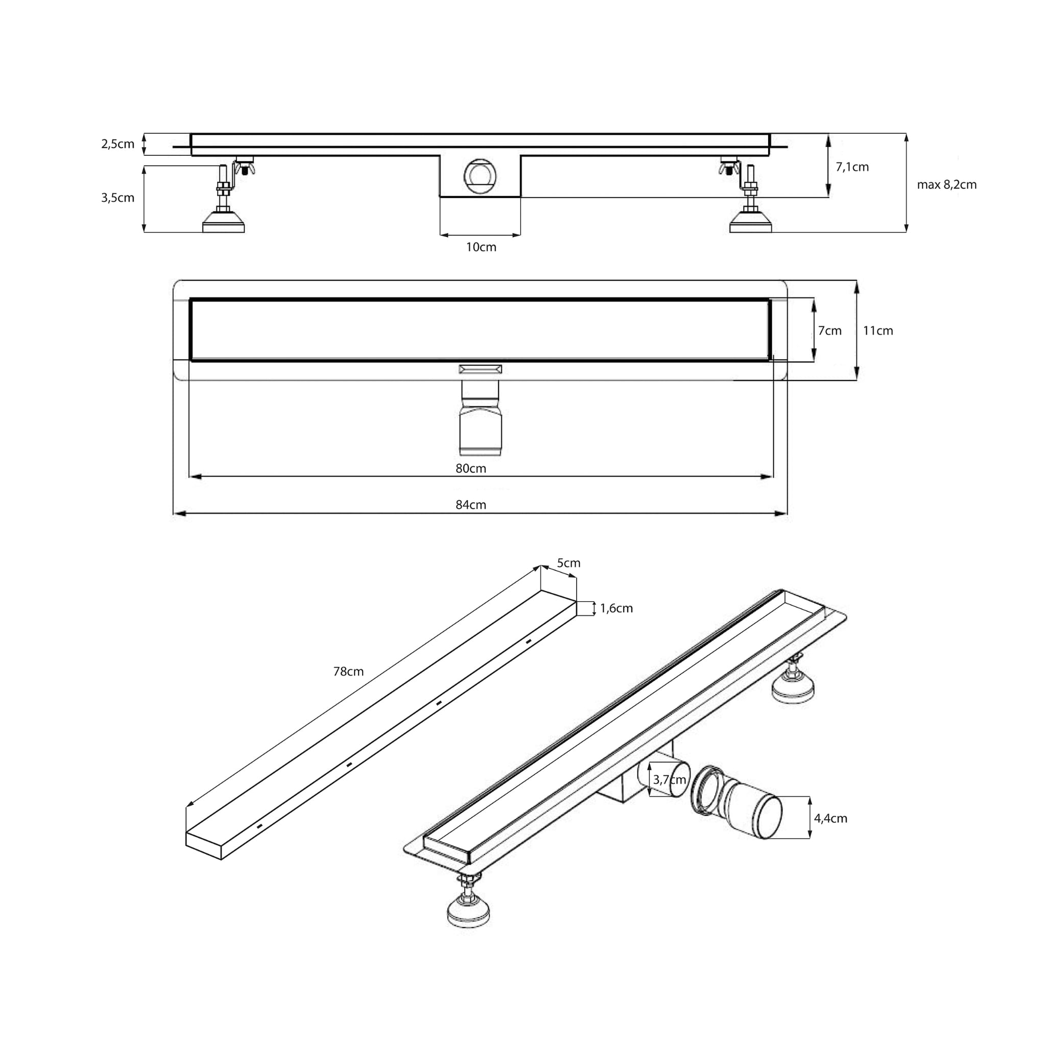 Odpływ liniowy 80cm z niskim syfonem 52mm oraz przepustowością aż 49l/min