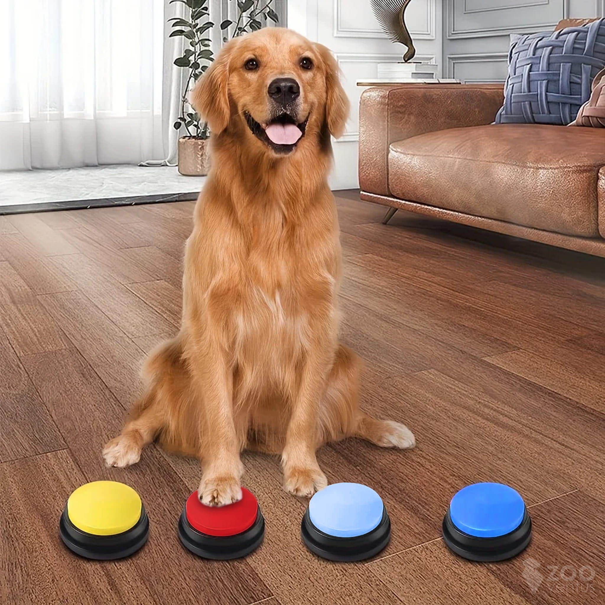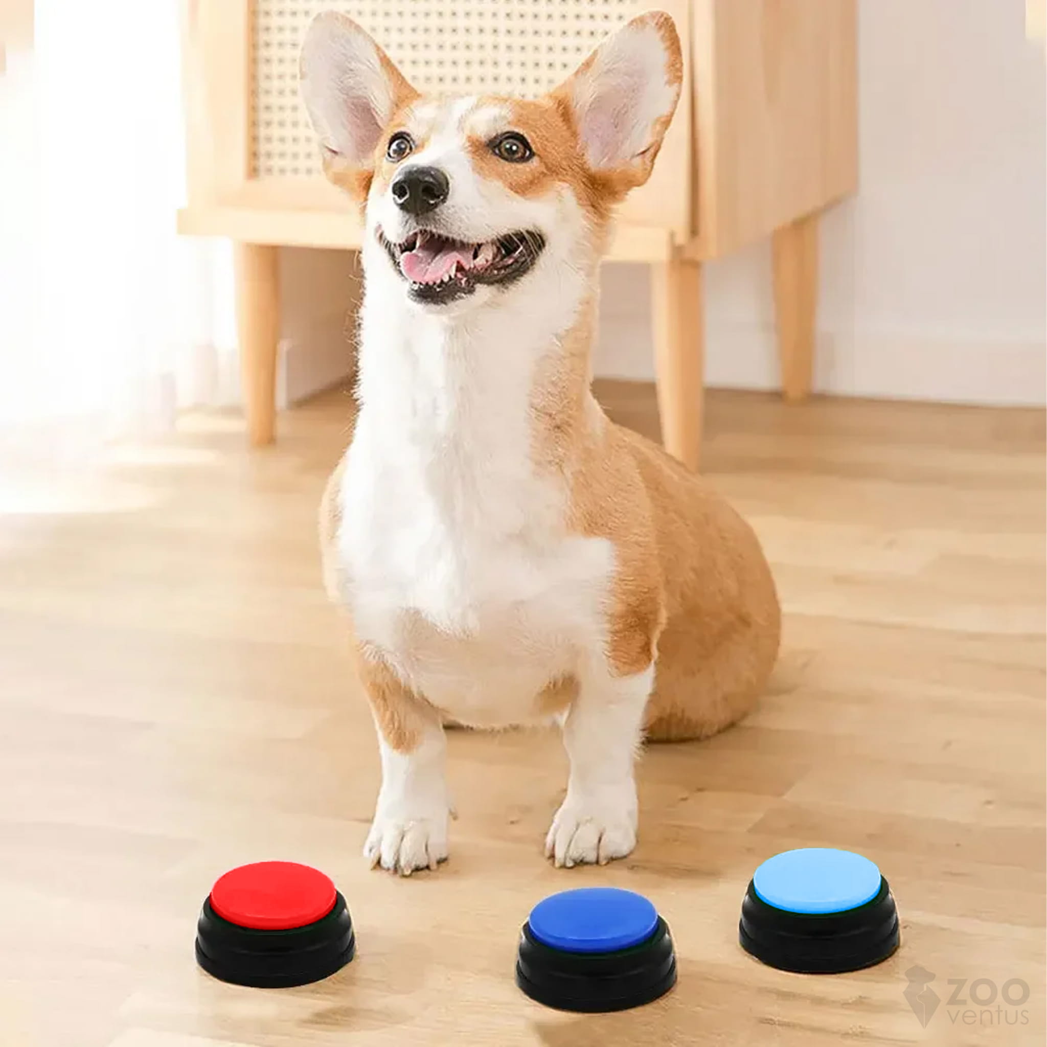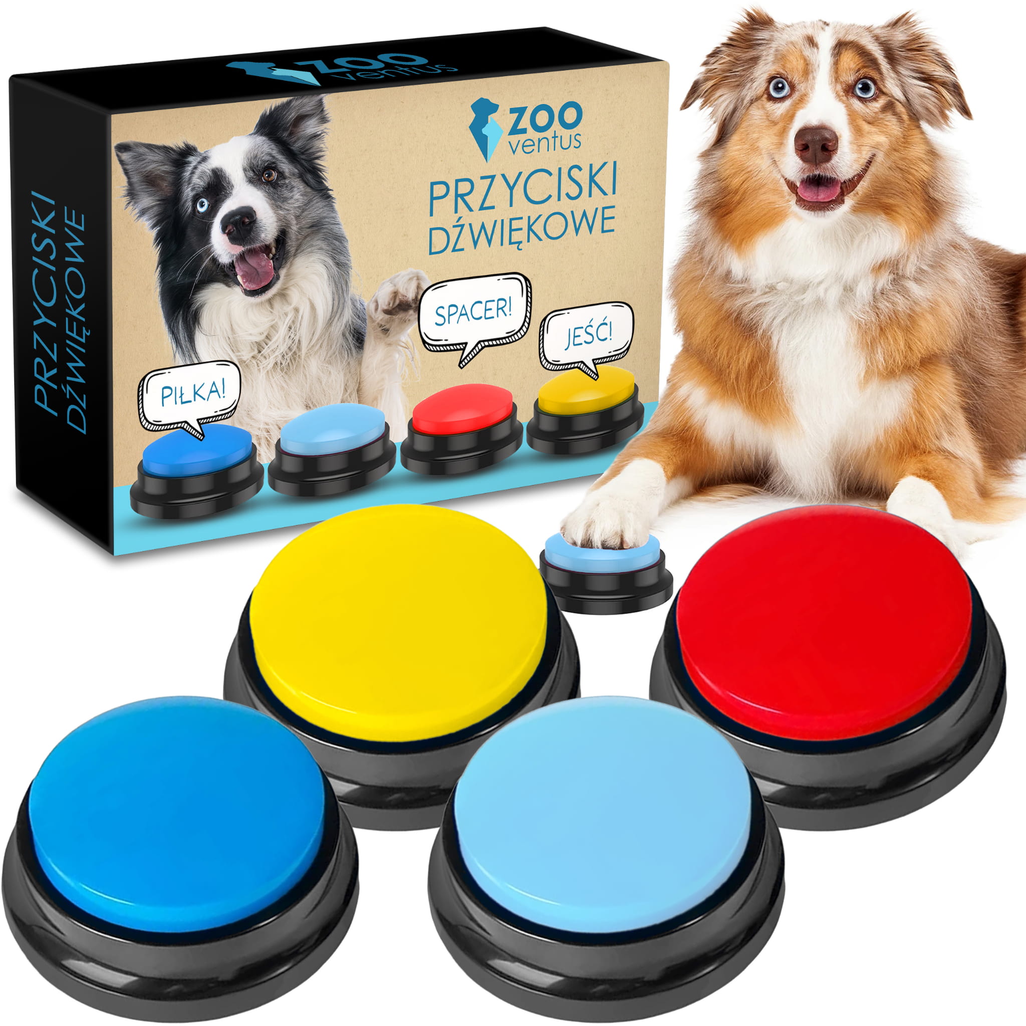 Zestaw przycisków komunikacyjnych dla psa w czterech kolorach