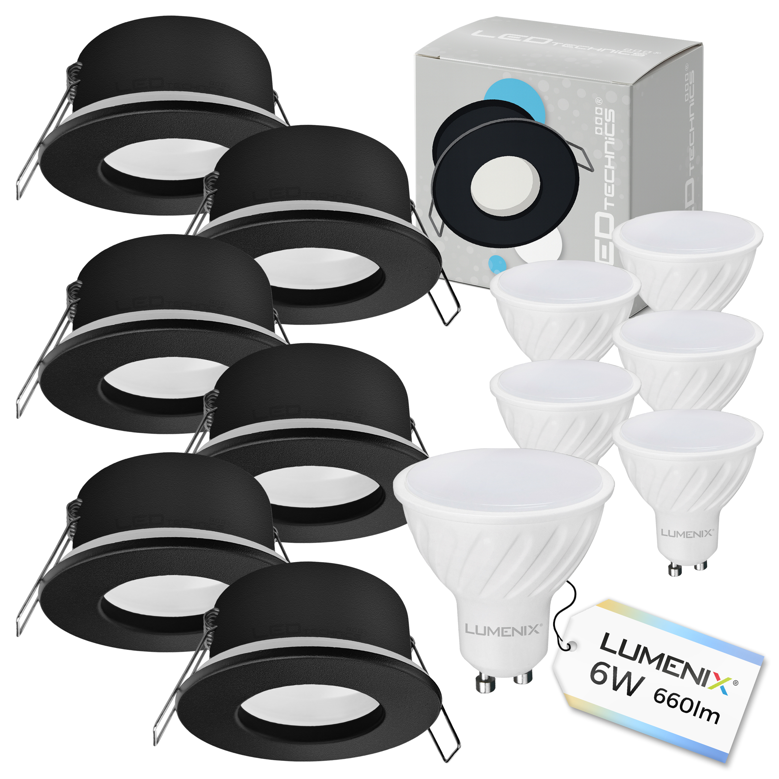 Zestaw: 6x Żarówka LED GU10 6W+ oprawa halogenowa podtynkowa hermetyczna + gniazdo przyłączeniowe GU10