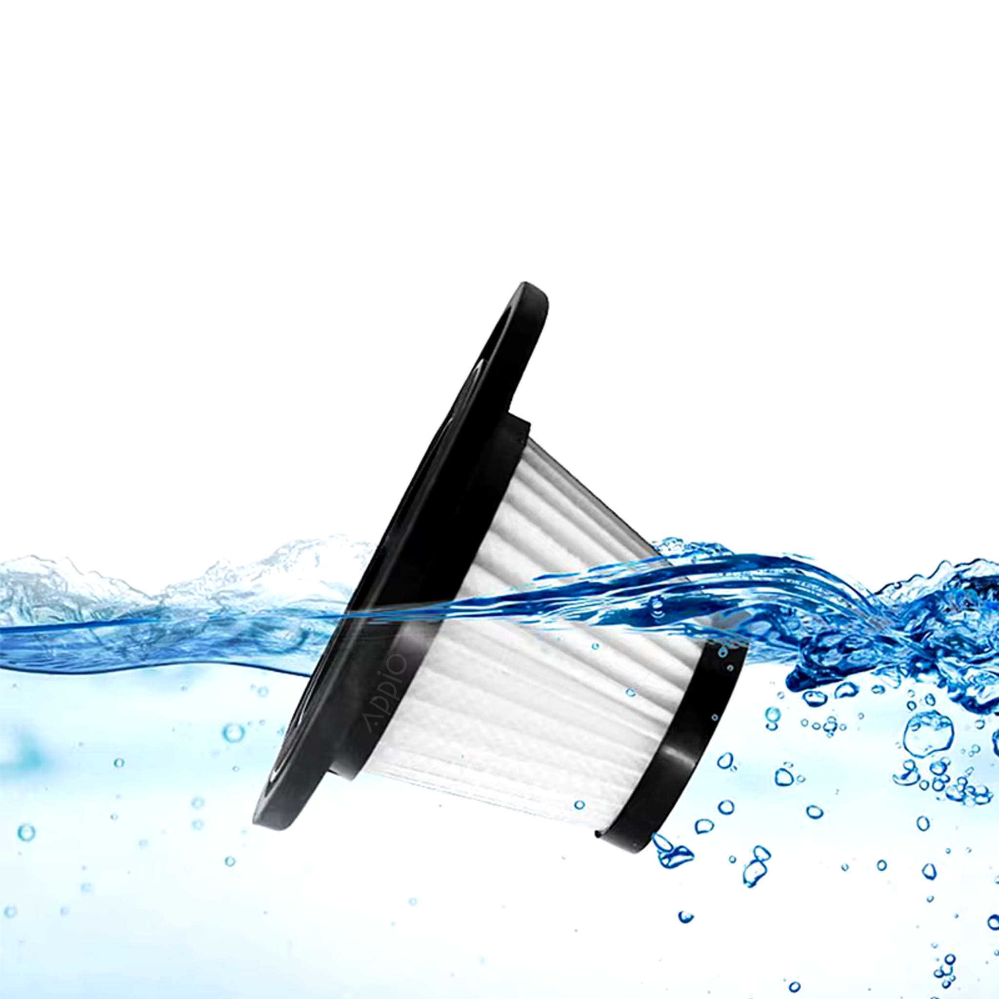 Filtr HEPA znajdujący się wewnątrz zapobiega wydmuchiwaniu najdrobniejszych pyłów na zewnątrz, dezynfekuje przechodzące przez niego powietrze, a dodatkowo chroni silnik urządzenia przed uszkodzeniem. Dzięki zastosowaniu filtra odkurzacz nie traci swojej mocy i cały czas jego siła ssania jest niezmienna. Można go bez problemu wyjąć i umyć pod bieżącą wodą.