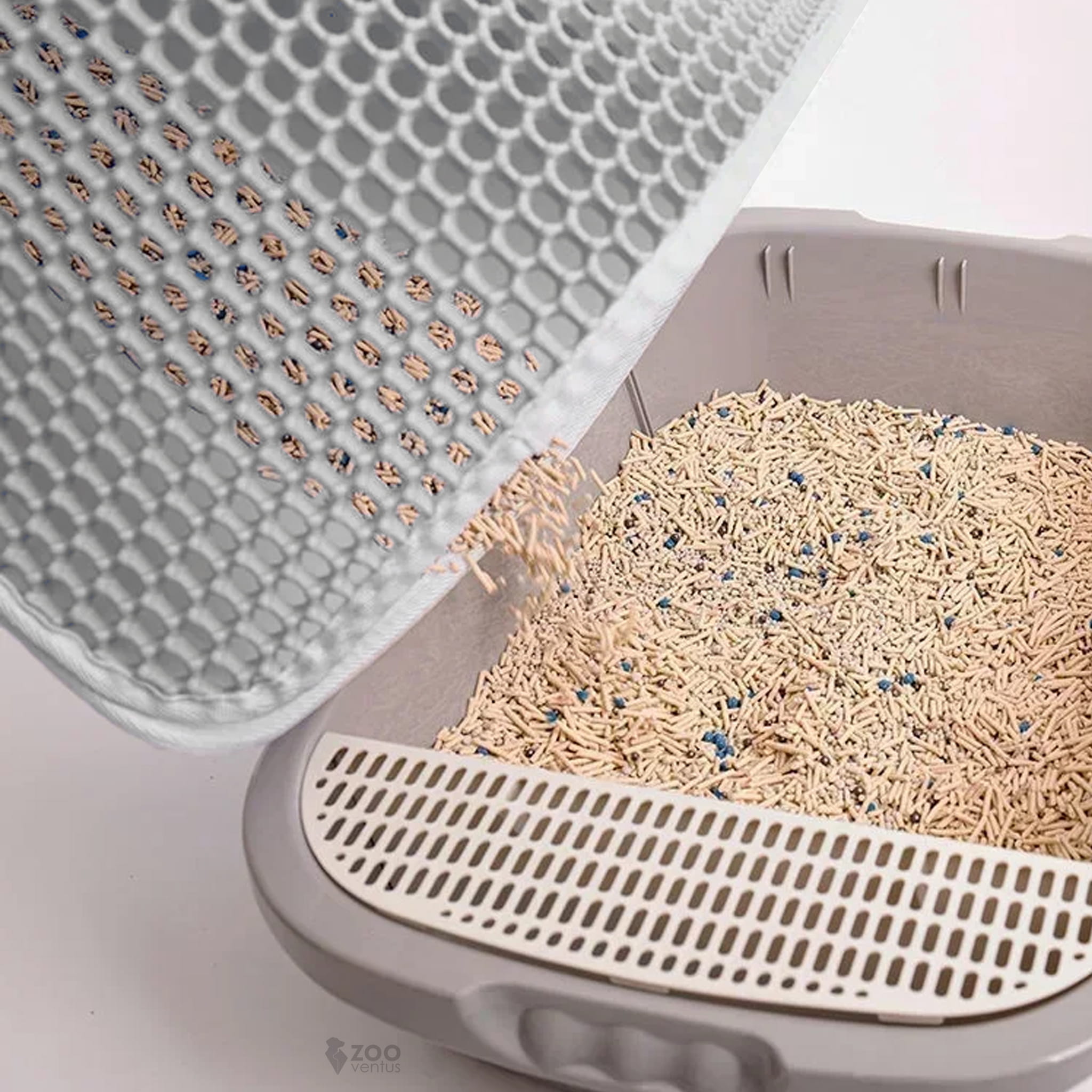 Dzięki specjalnej dwuwarstwowej konstrukcji zatrzymuje żwirek już przy pierwszym kroku kota – zanim trafi na Twoją podłogę.