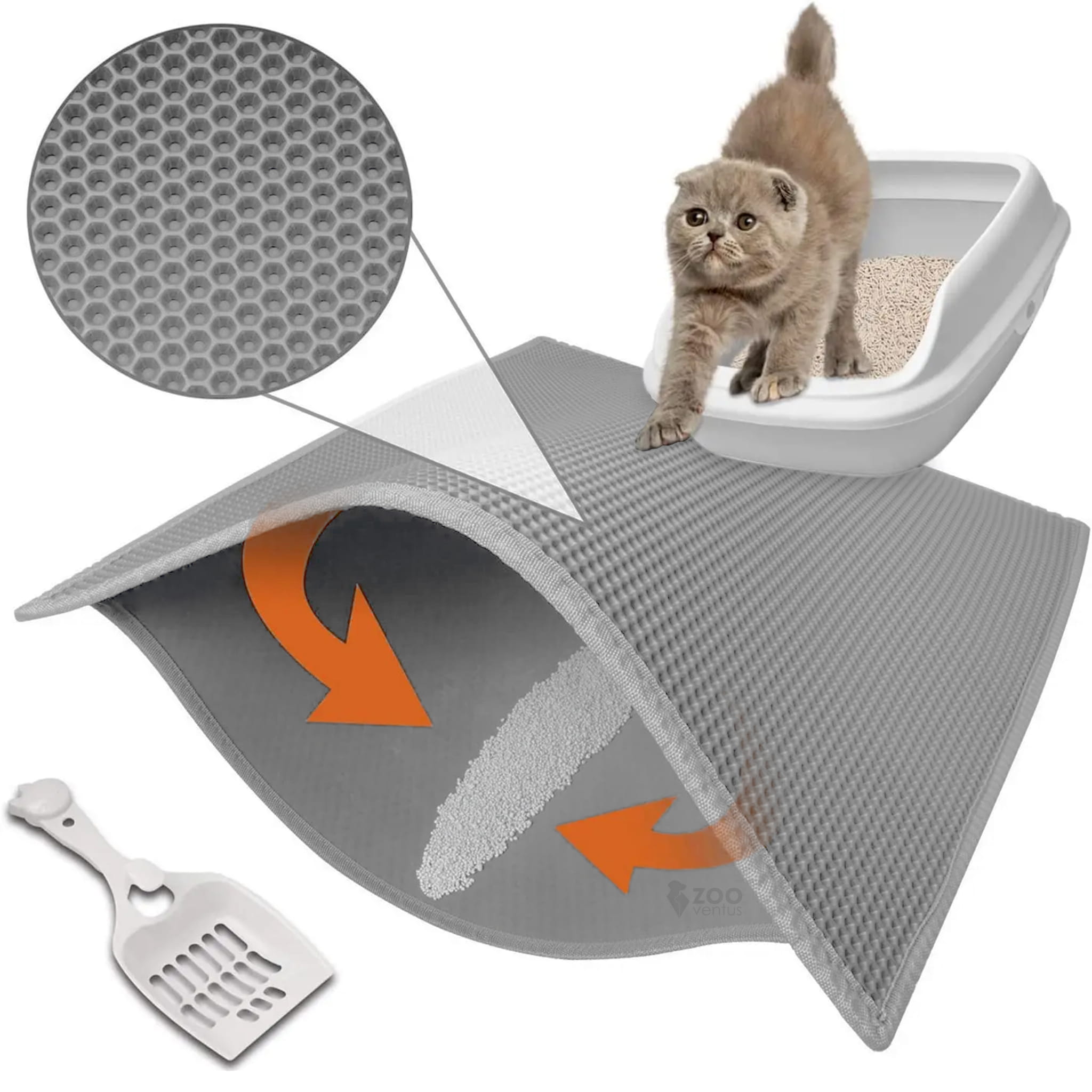 Bardzo Duża Mata Pod Kuwete Dwuwarstwowa Podkładka Dla Kota Szara 75x55
