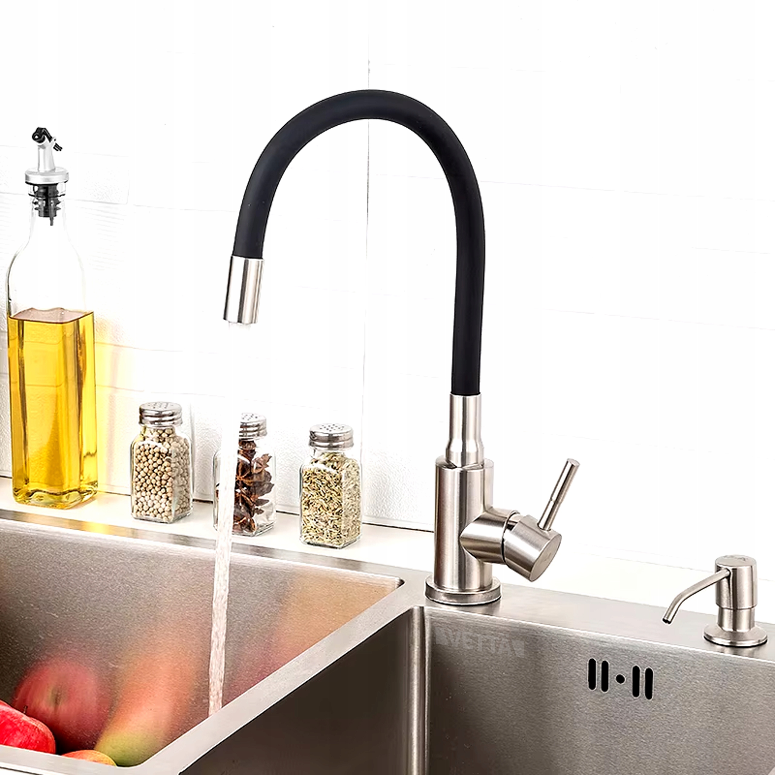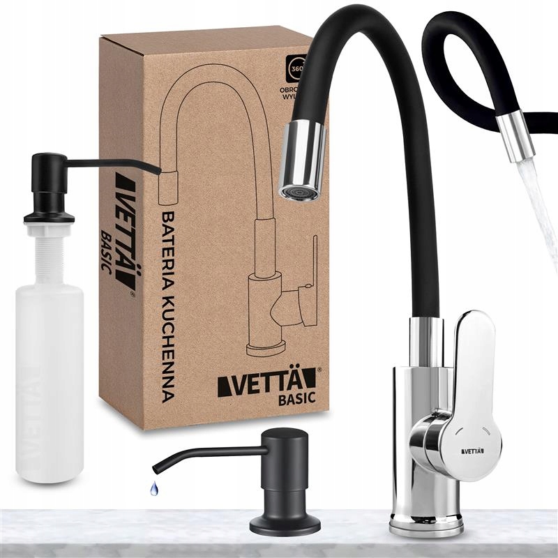 Bateria Kuchenna Elastyczna Giętka Stojąca Wylewka Kran Chrom + Dozownik