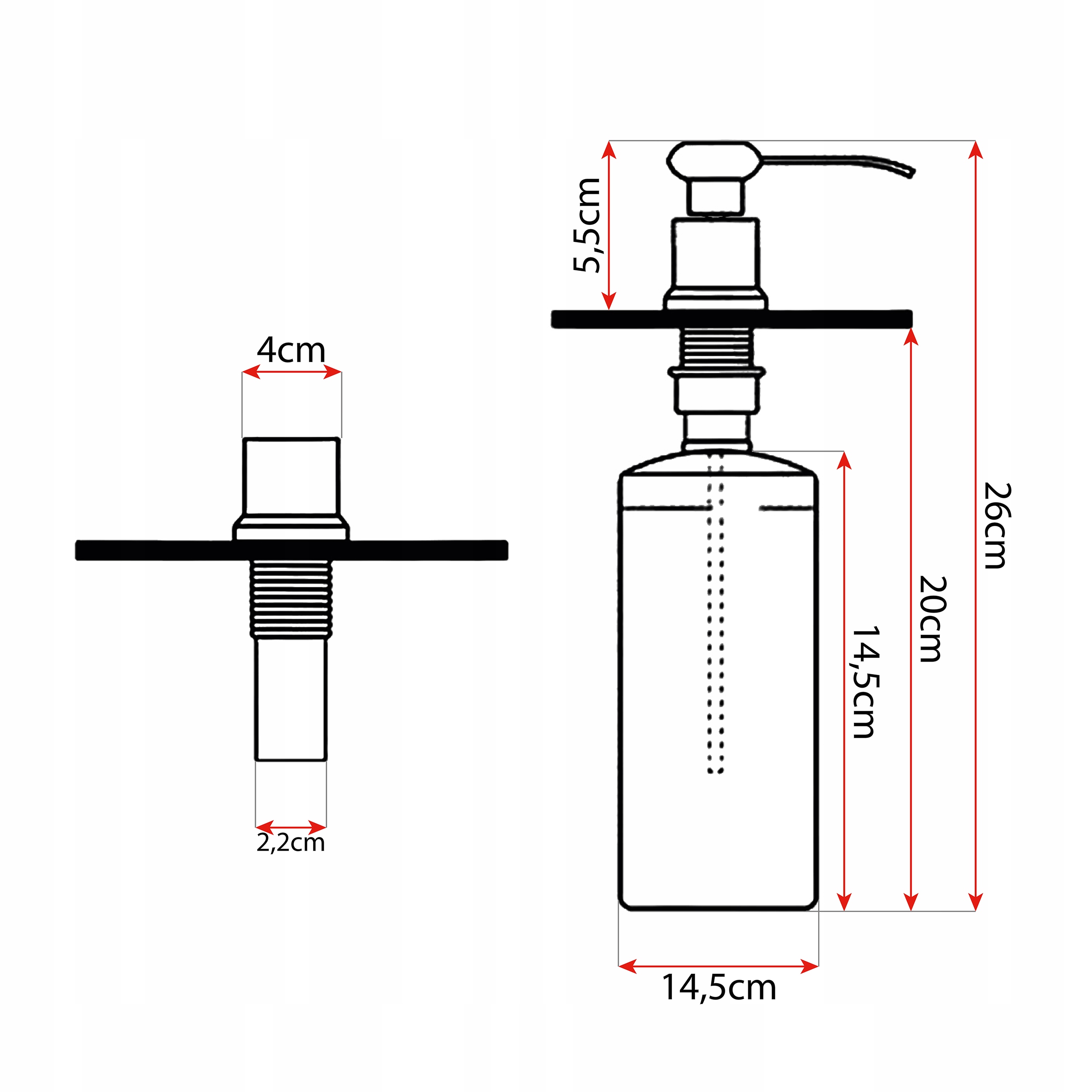 - Wysokość całego dozownika: 26cm