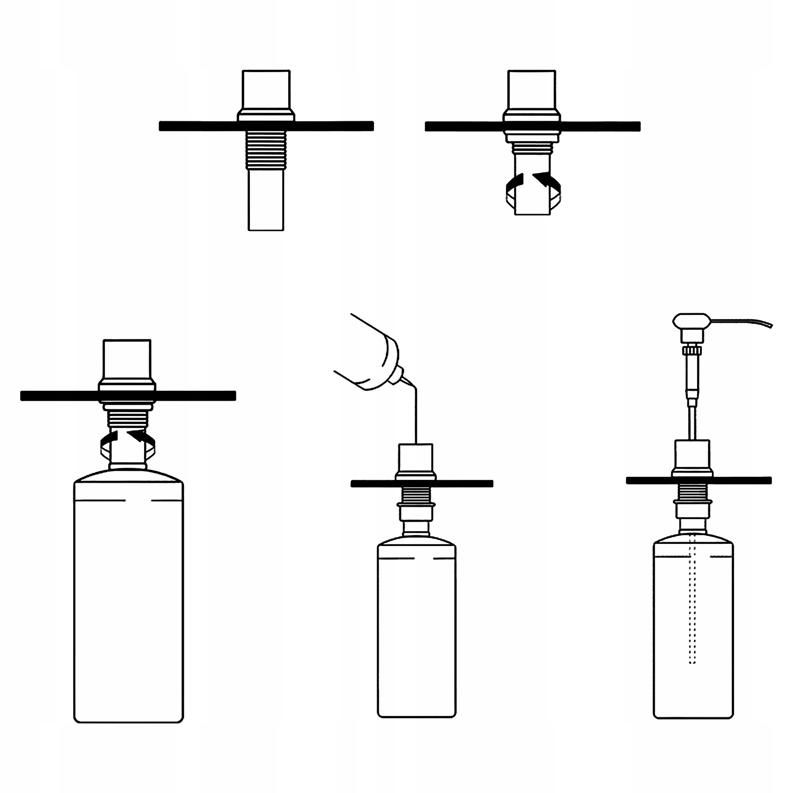 - Przykręć butelkę do dolnej części dozownika.