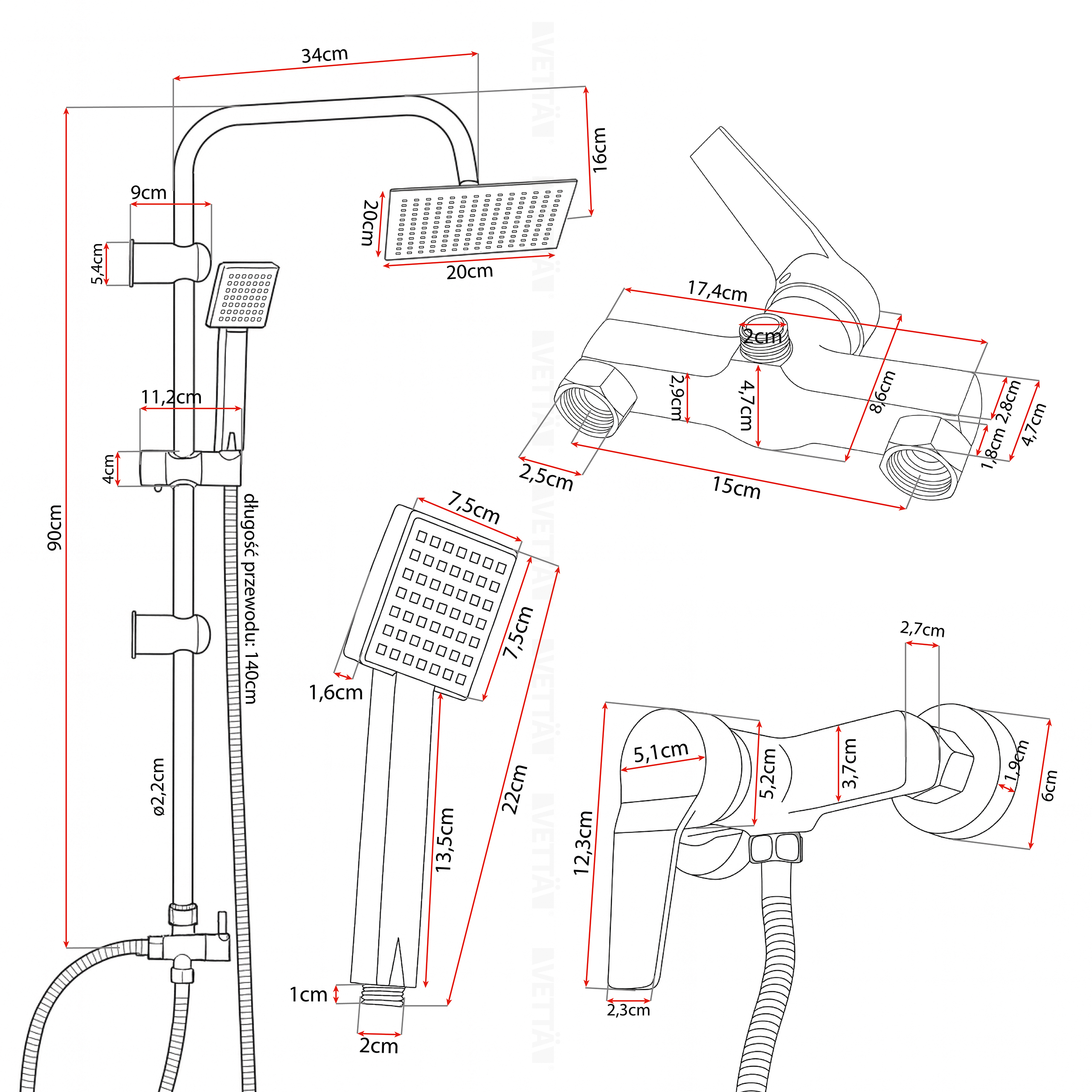 W zestawie z baterią otrzymujemy również wężyki przyłączeniowe o długości 140cm, które dostarczają wodę z maksymalnym komfortem, a regulacja mocowań umożliwia łatwe dopasowanie kolumny do indywidualnych potrzeb i wymiarów łazienki, co znacznie ułatwi jej instalację w istniejących już otworach montażowych. Takie rozwiązanie sprawdzi się w każdej łazience, w której trzeba wymienić sam prysznic, bez konieczności przeprowadzania rozległego remontu i kucia płytek.