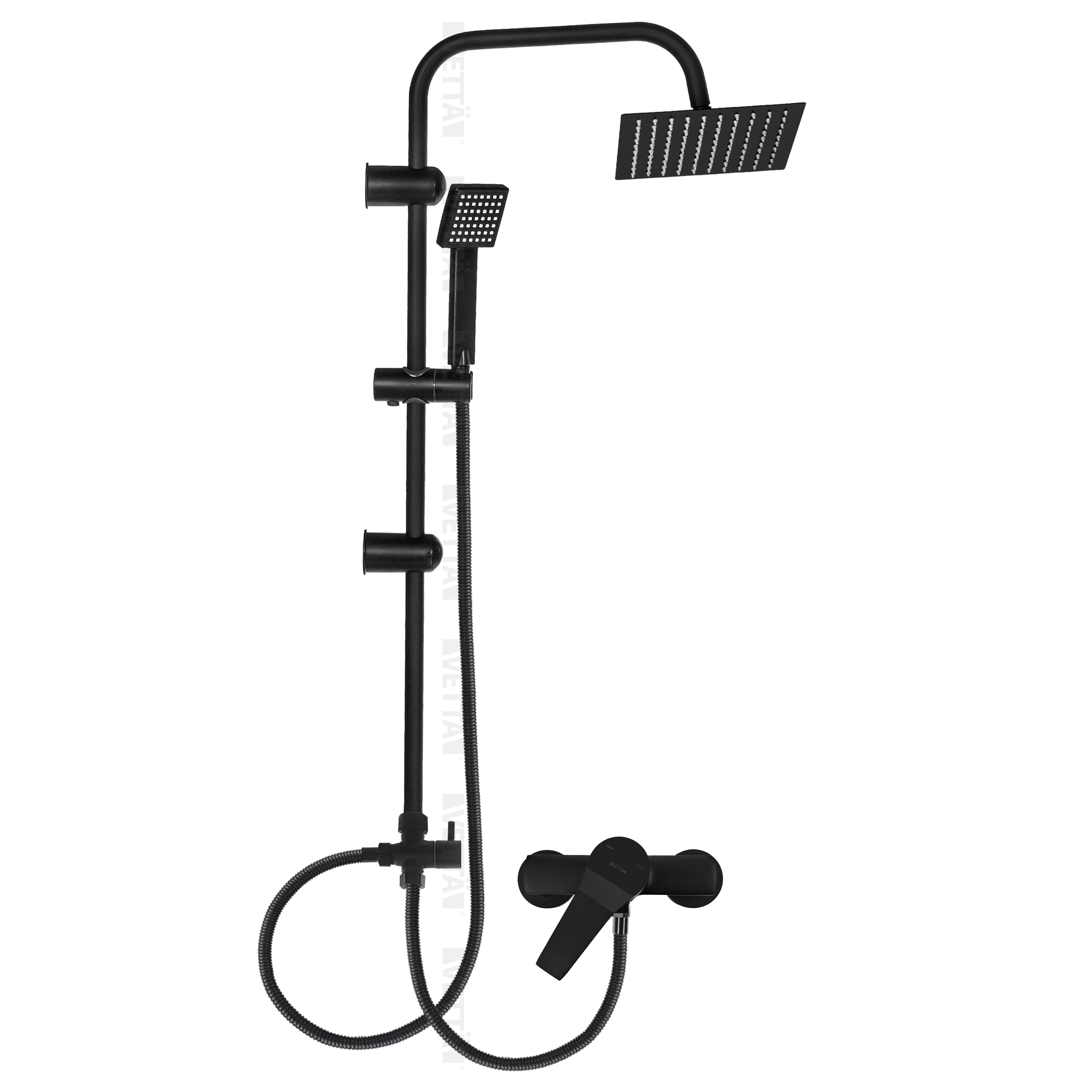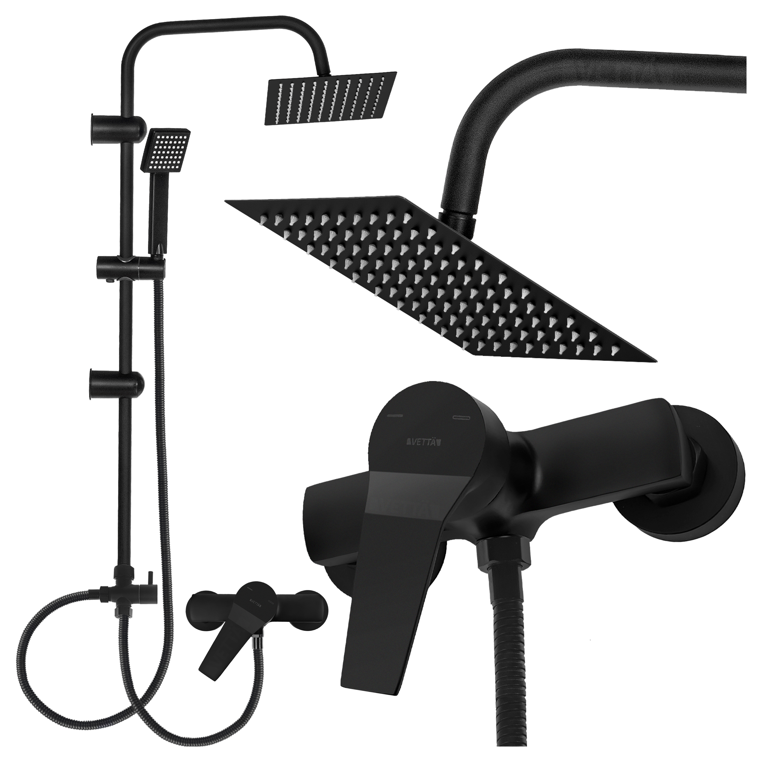 Bateria Natryskowa Czarny Mat + Zestaw Prysznicowy Deszczownica VETTÄ