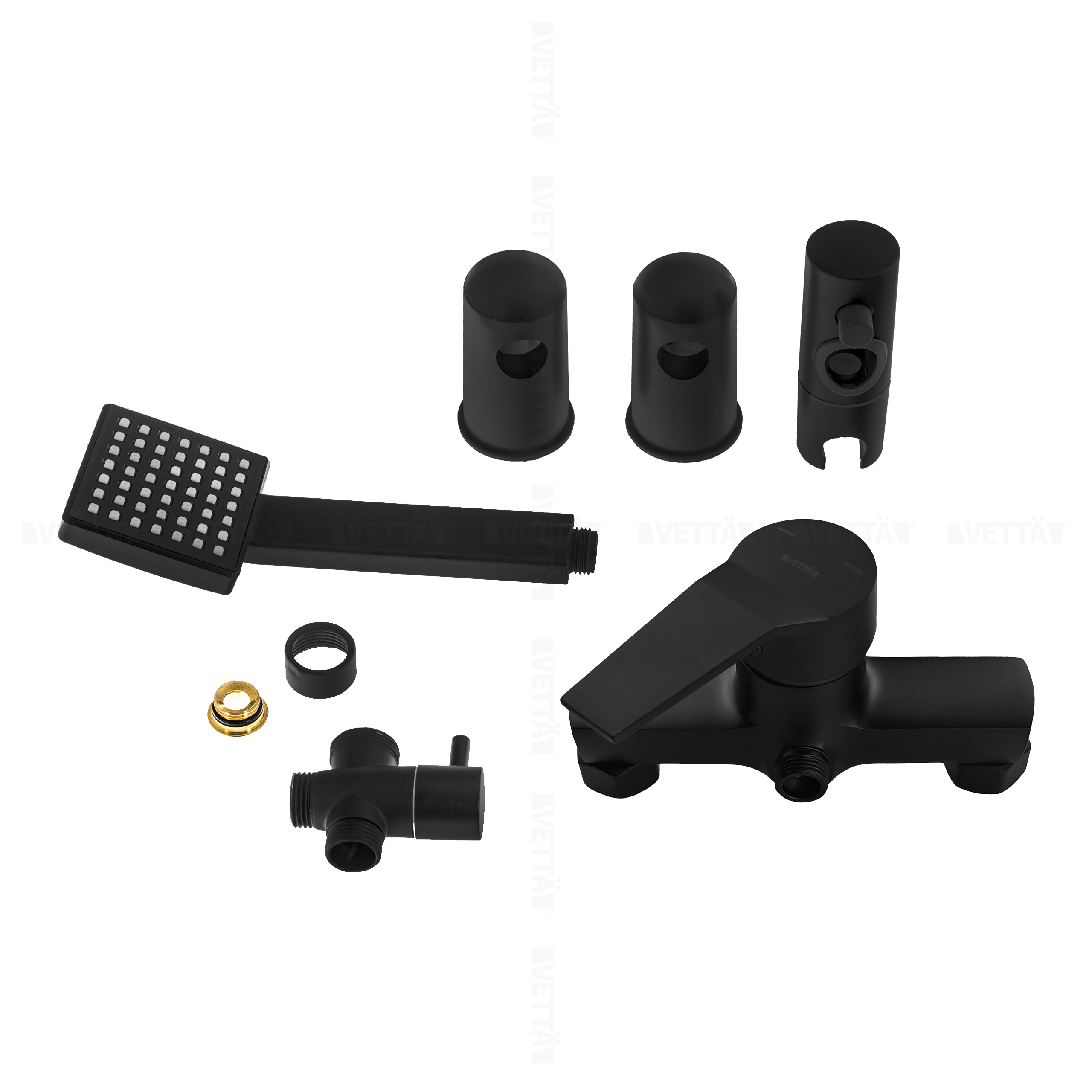 Czarna bateria prysznicowa VETTÄ to stylowa i funkcjonalna propozycja do każdego wnętrza. Jeśli chcesz nadać swojej łazience nieco więcej stylu, kwadratowa bateria prysznicowa VETTÄ w czarnym, matowym kolorze będzie idealnym eleganckim i nowoczesnym rozwiązaniem. Funkcjonalna bateria natryskowa, dzięki jednemu z najmodniejszych kolorów ostatnich sezonów nada Twojej łazience wyjątkowego charakteru.
