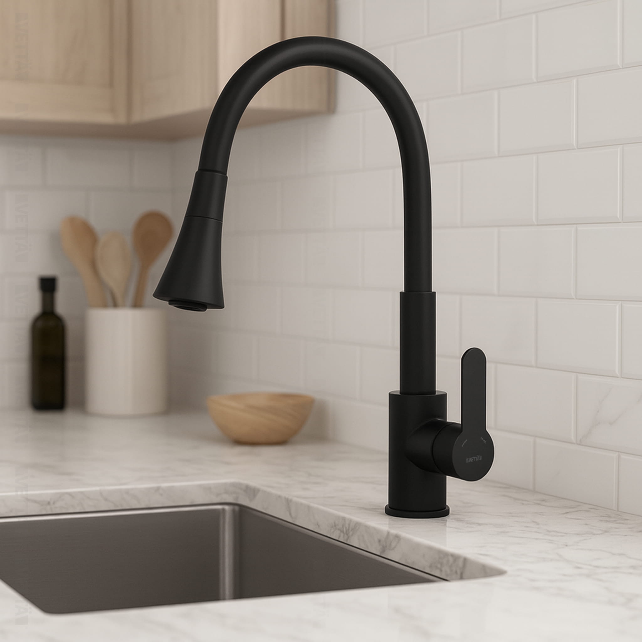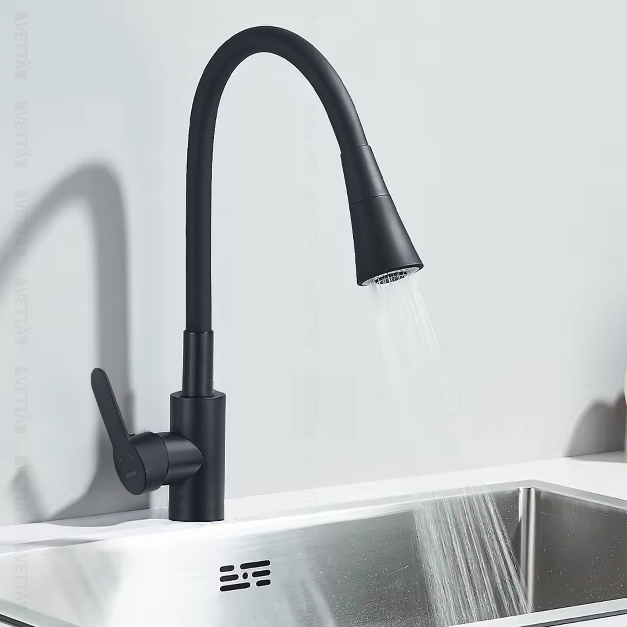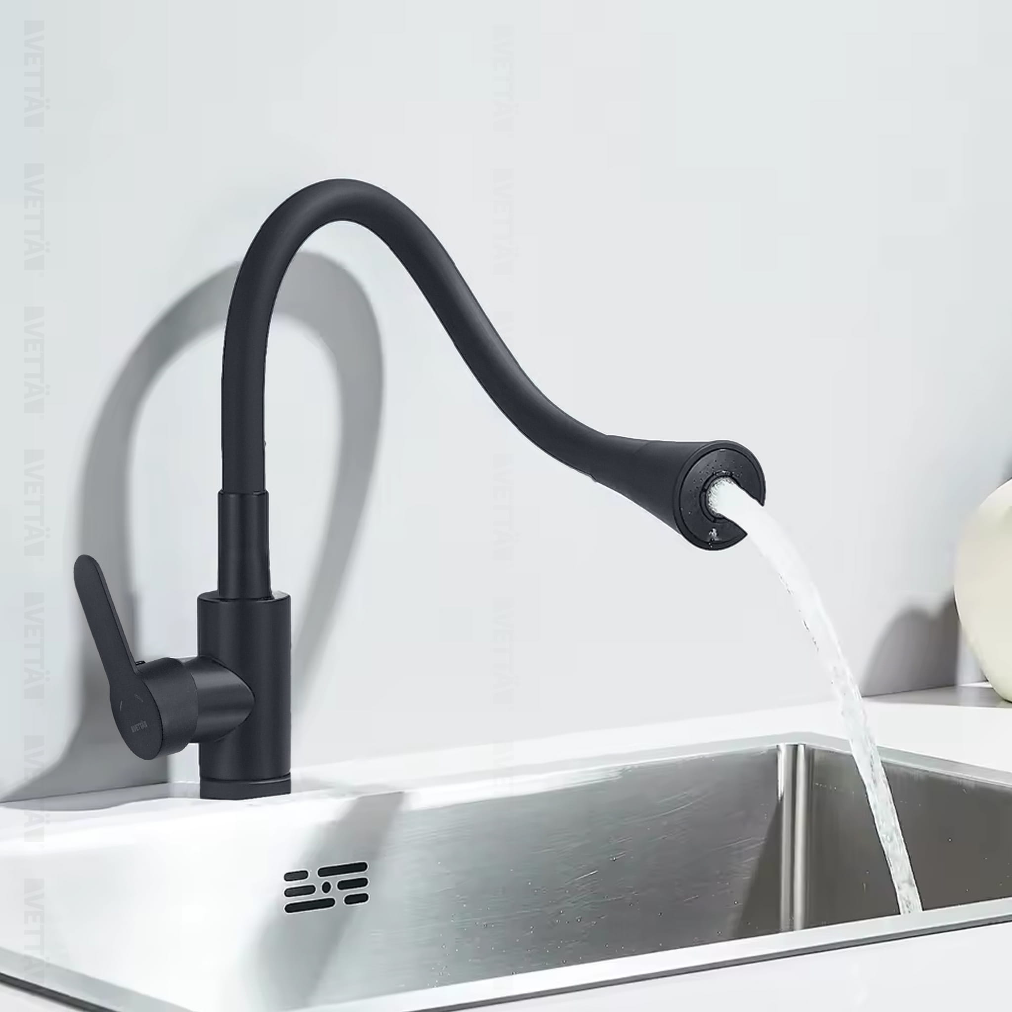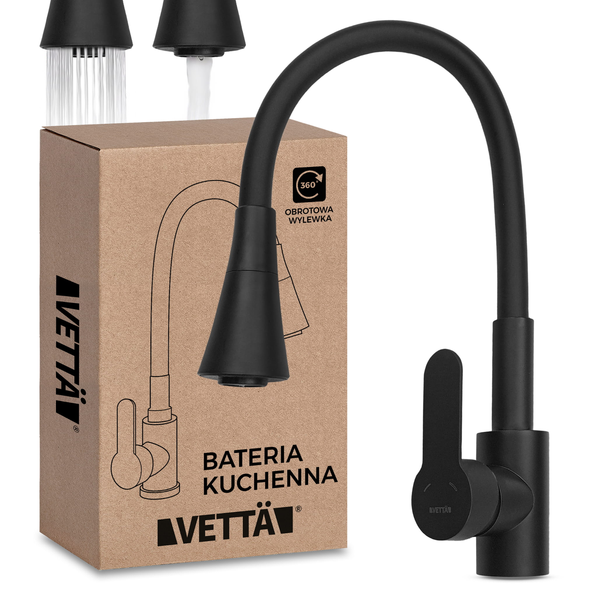 Czarna bateria kuchenna VETTÄ to idealne rozwiązanie dla osób poszukujących funkcjonalnego i minimalistycznego akcesorium do kuchni czy pomieszczenia gospodarczego. W przeciwności do większości konkurencji, wykonana z wysokiej jakości stopu stali nierdzewnej i mosiądzu, bateria zapewnia nie tylko estetyczny wygląd, ale także długą żywotność i niezawodność w użytkowaniu.