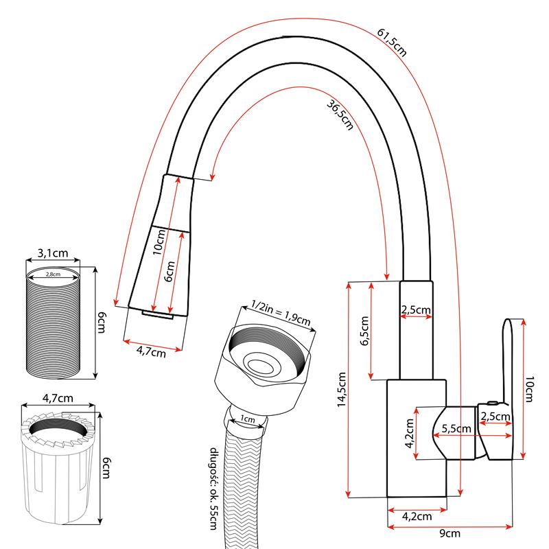 - Wylewka: ruchoma, giętka