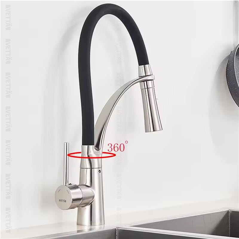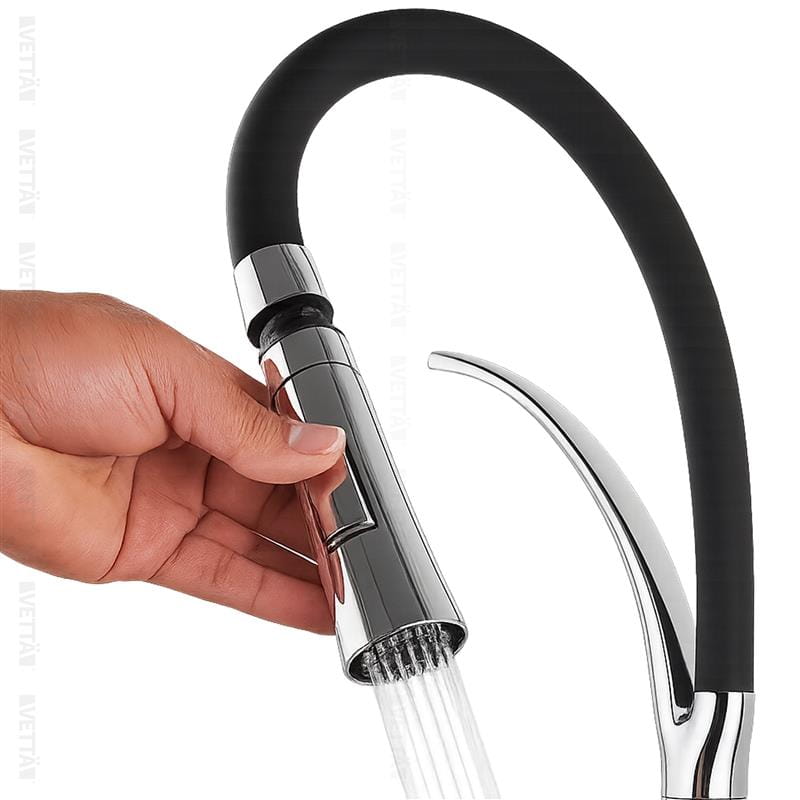 Bateria kuchenna elastyczna giętka wylewka wysoka kran do umywalki czarny