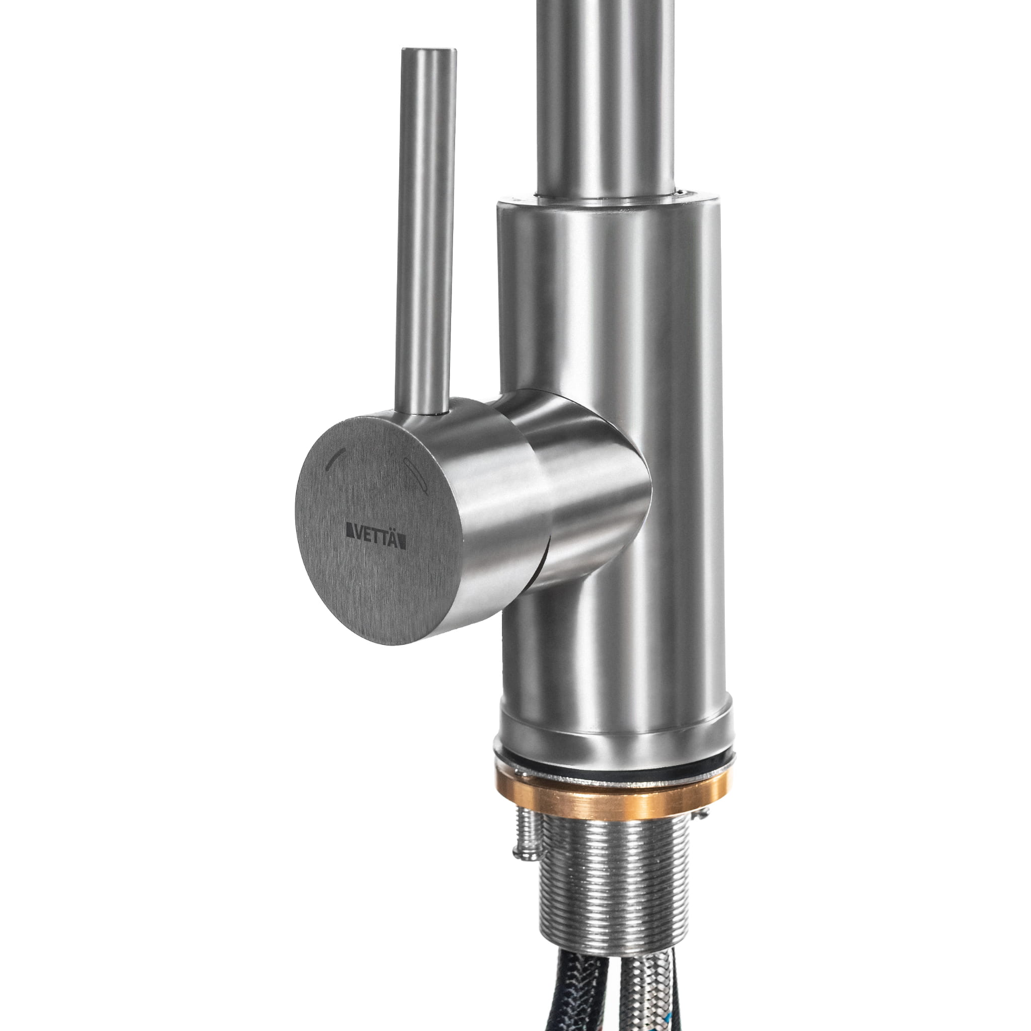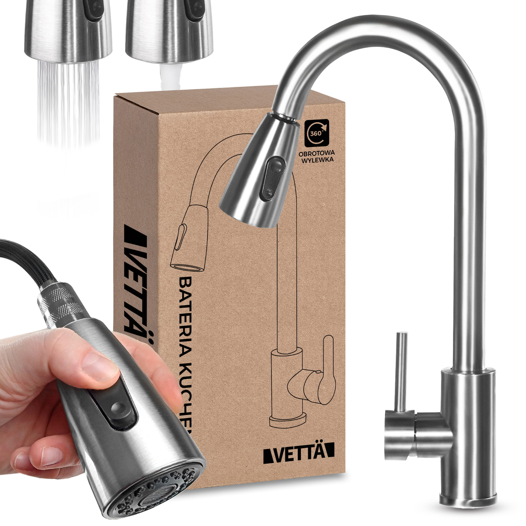 Chromowana bateria kuchenna VETTÄ to idealne rozwiązanie dla osób poszukujących ponadczasowego i funkcjonalnego akcesorium do kuchni czy pomieszczenia gospodarczego. W przeciwności do większości konkurencji, wykonana z wysokiej jakości stopu stali nierdzewnej i mosiądzu, bateria zapewnia nie tylko estetyczny wygląd, ale także długą żywotność i niezawodność w użytkowaniu.