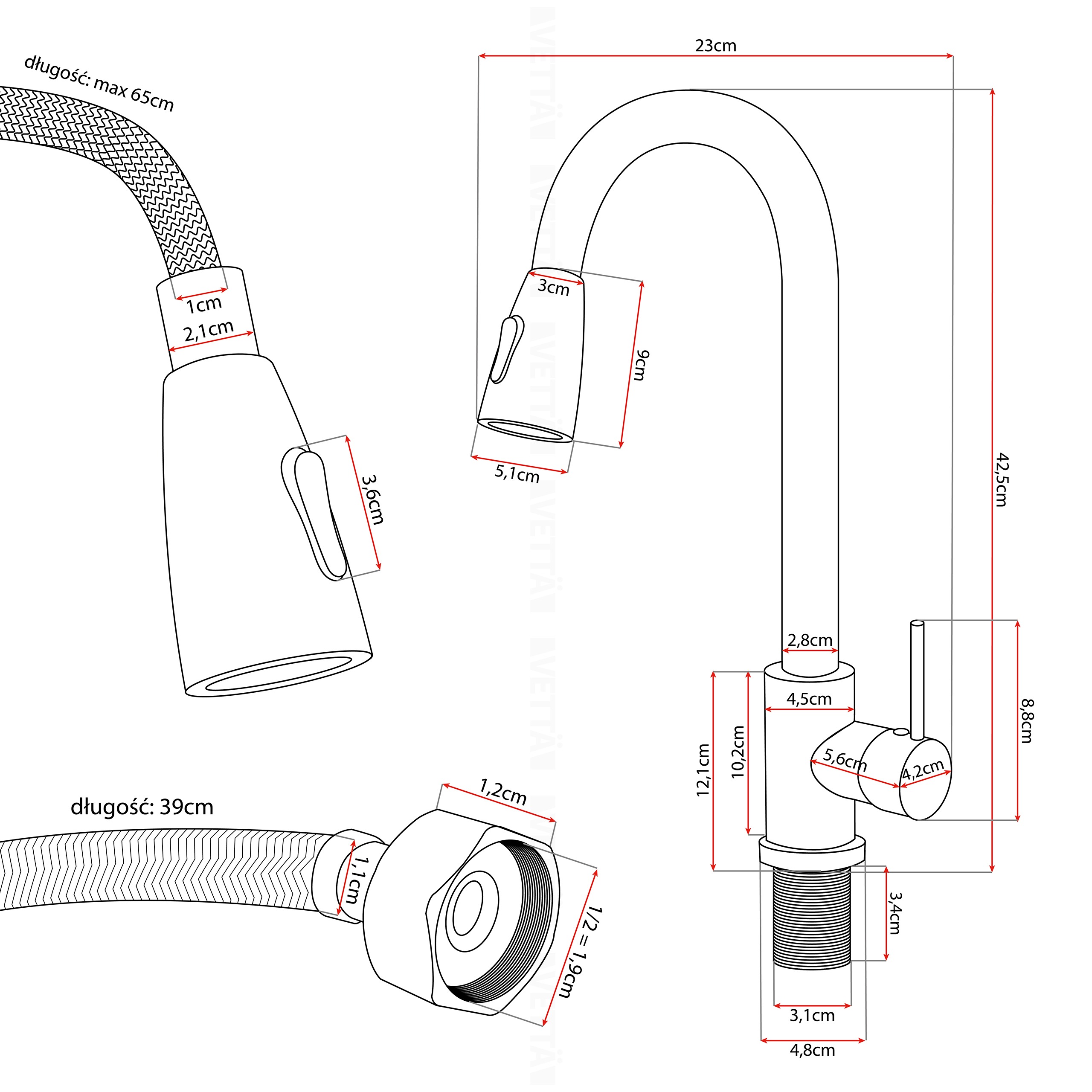 - Ruchoma, wyciągana wylewka zapewnia wygodę i wysoką efektywność
