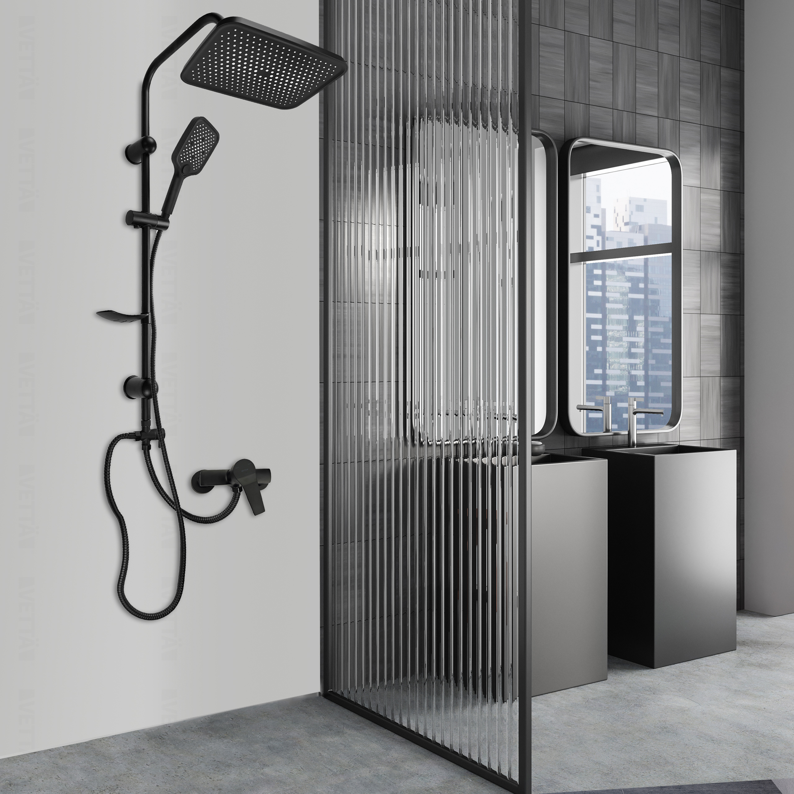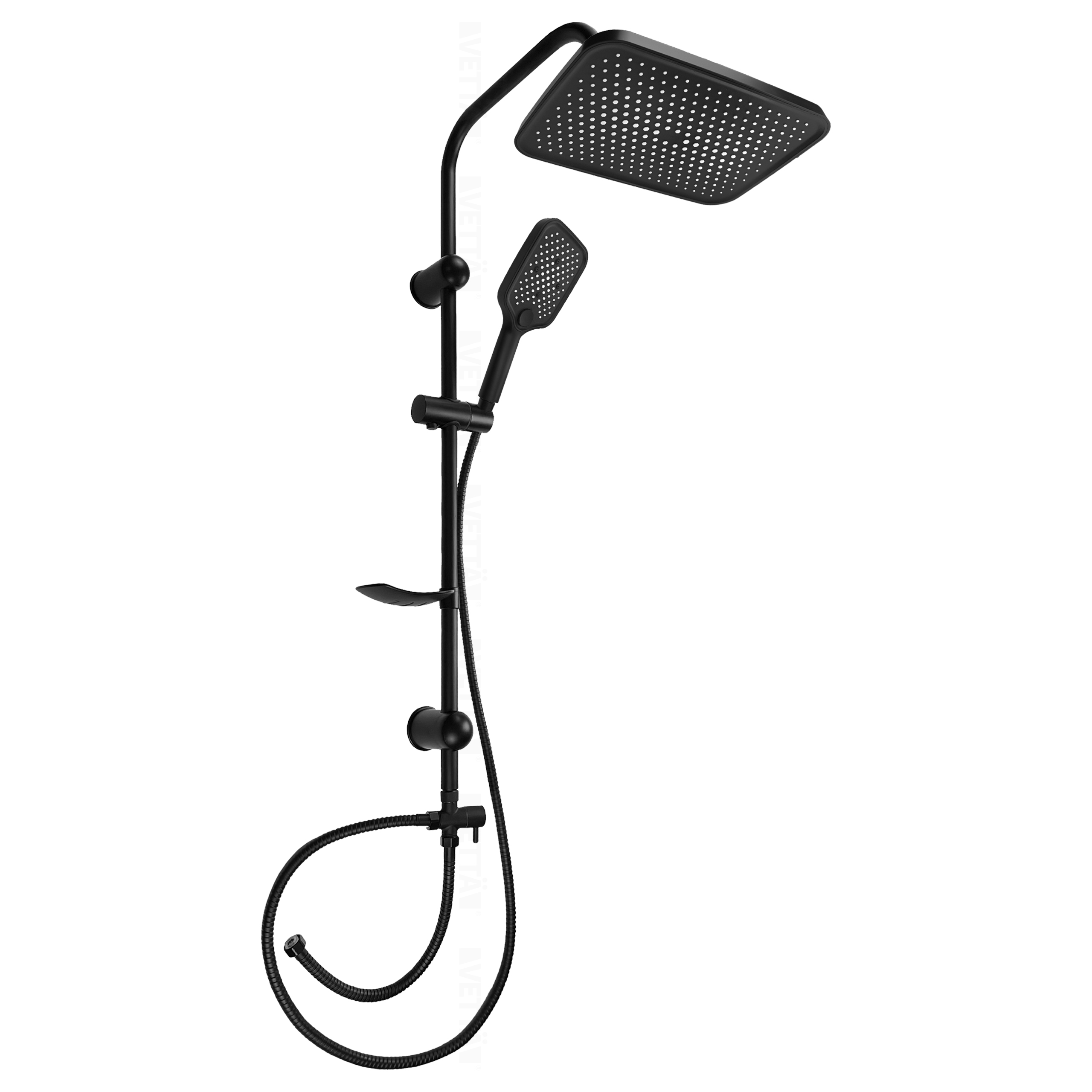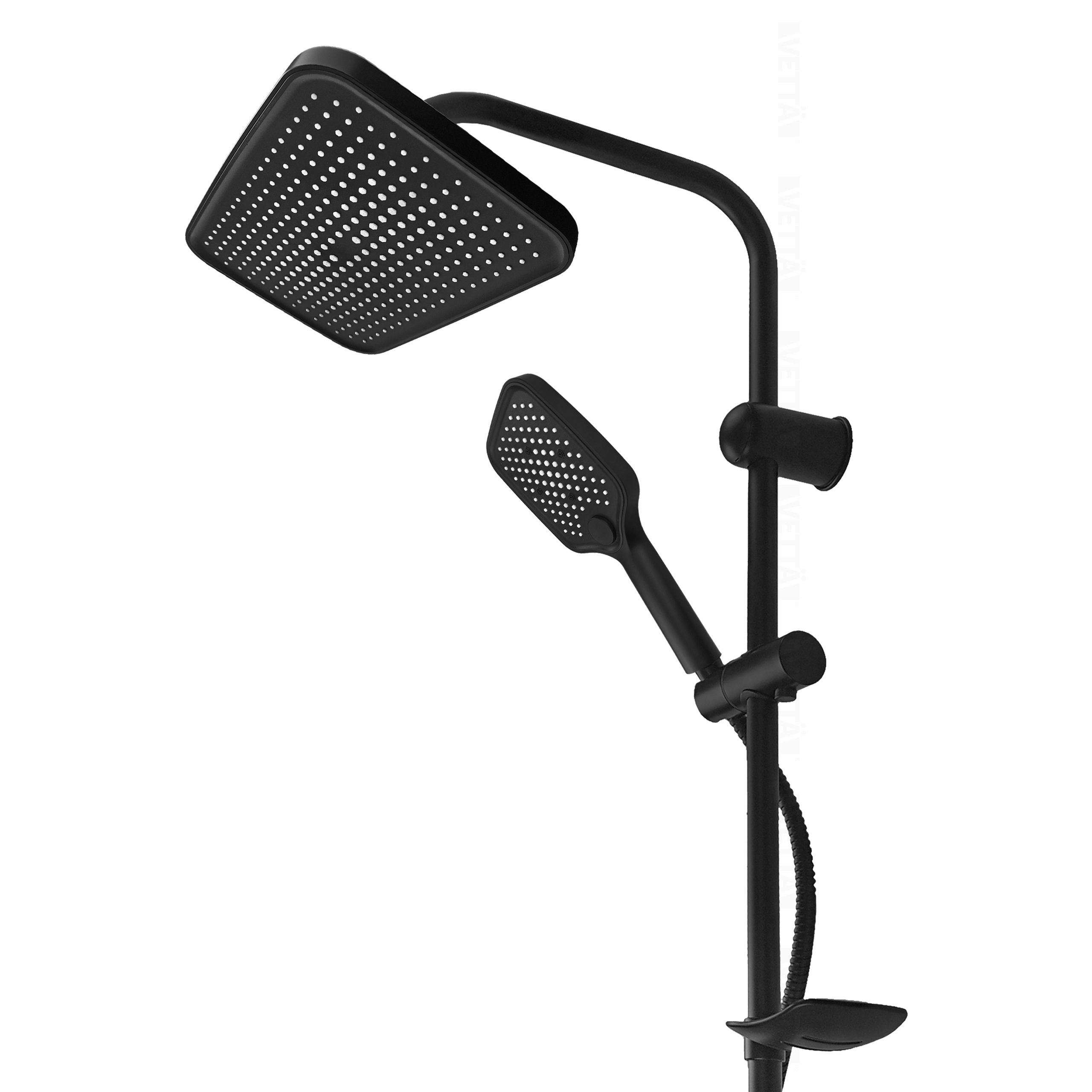 Czarny zestaw prysznicowy VETTÄ to stylowa i funkcjonalna propozycja do każdego wnętrza. Jeśli chcesz nadać swojej łazience nieco więcej stylu, kwadratowa deszczownica VETTÄ w kolorze czarnym będzie idealnym eleganckim i nowoczesnym rozwiązaniem. Ten funkcjonalny natrysk, dzięki jednemu z najmodniejszych kolorów ostatnich sezonów, nada Twojej łazience wyjątkowego charakteru.