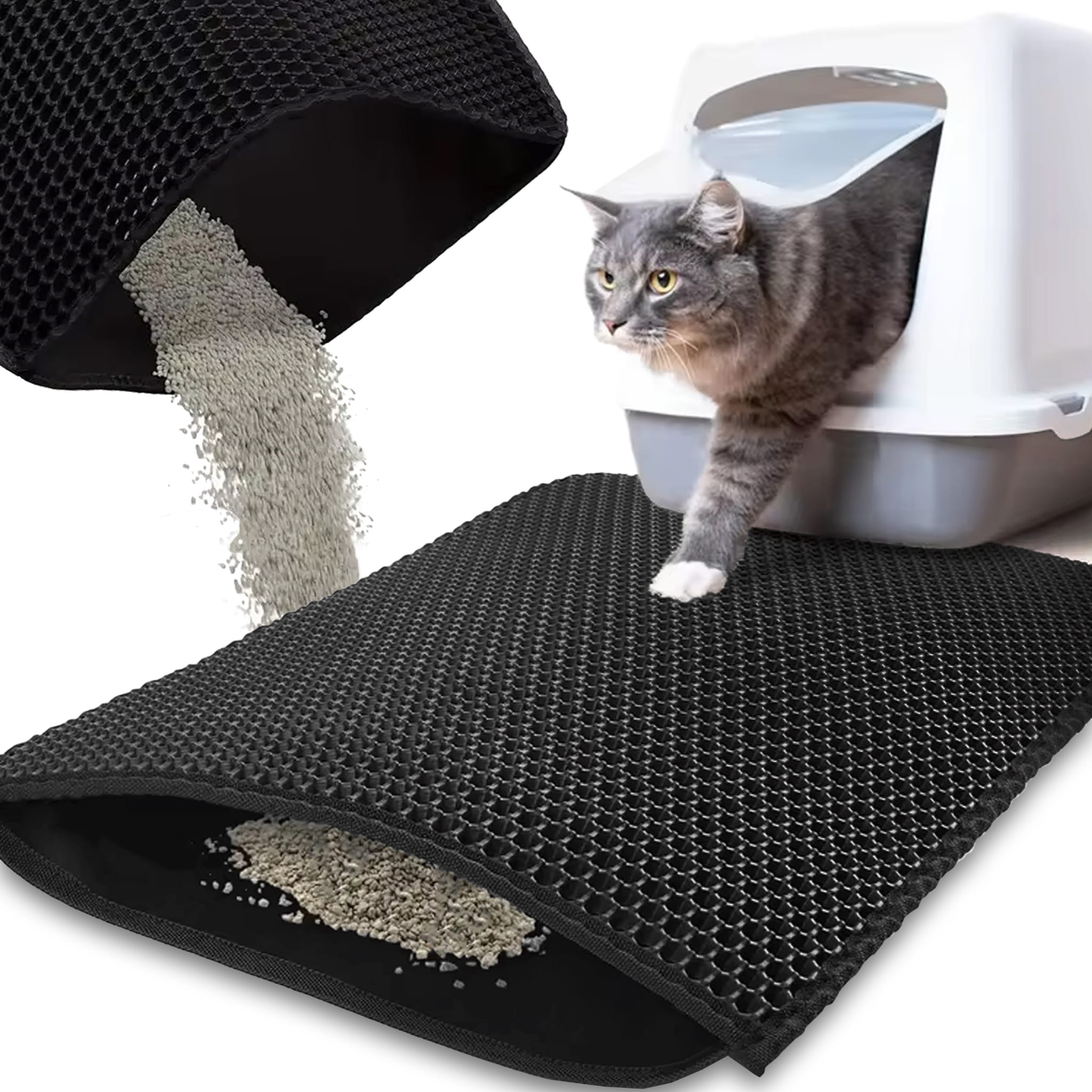 Dwuwarstwowa mata pod kuwetę wycieraczka podkładka dla kota czarna 60x45