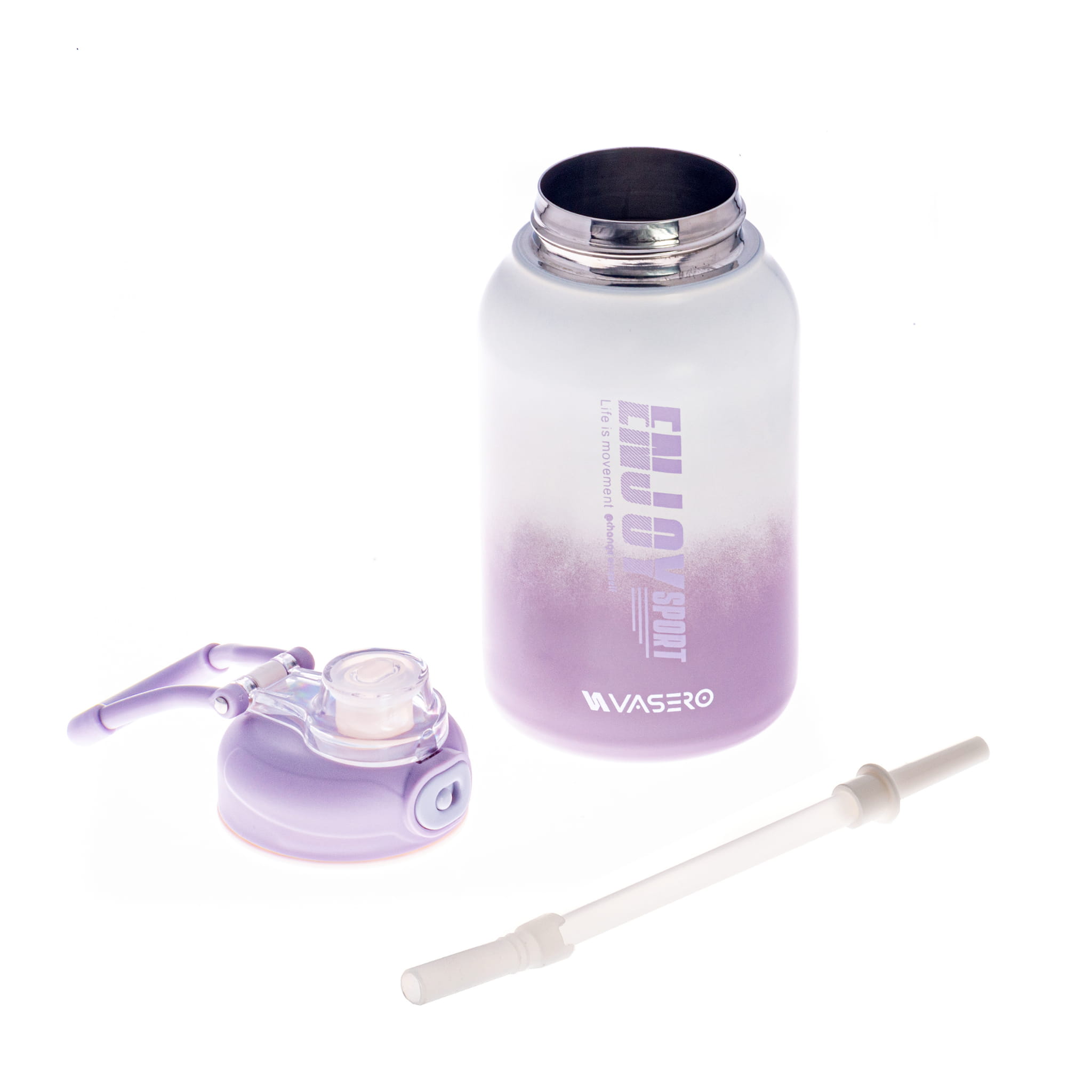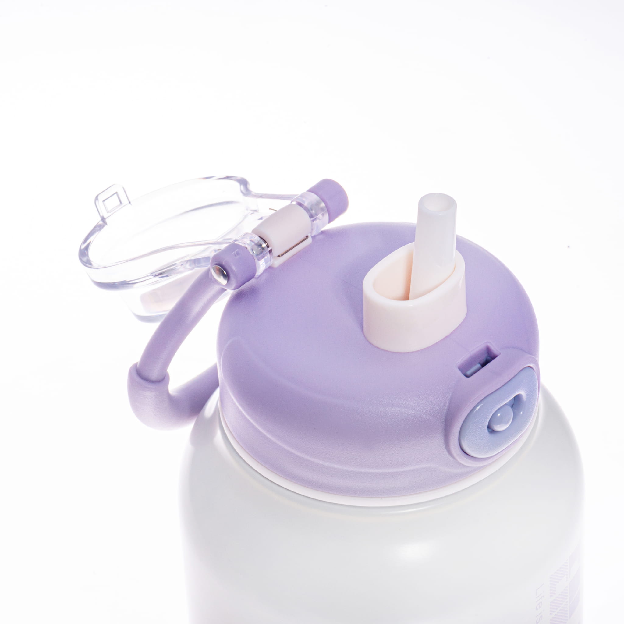 Fioletowy kubek termiczny próżniowy 800ml blokada uchwyt ustnik ze słomką