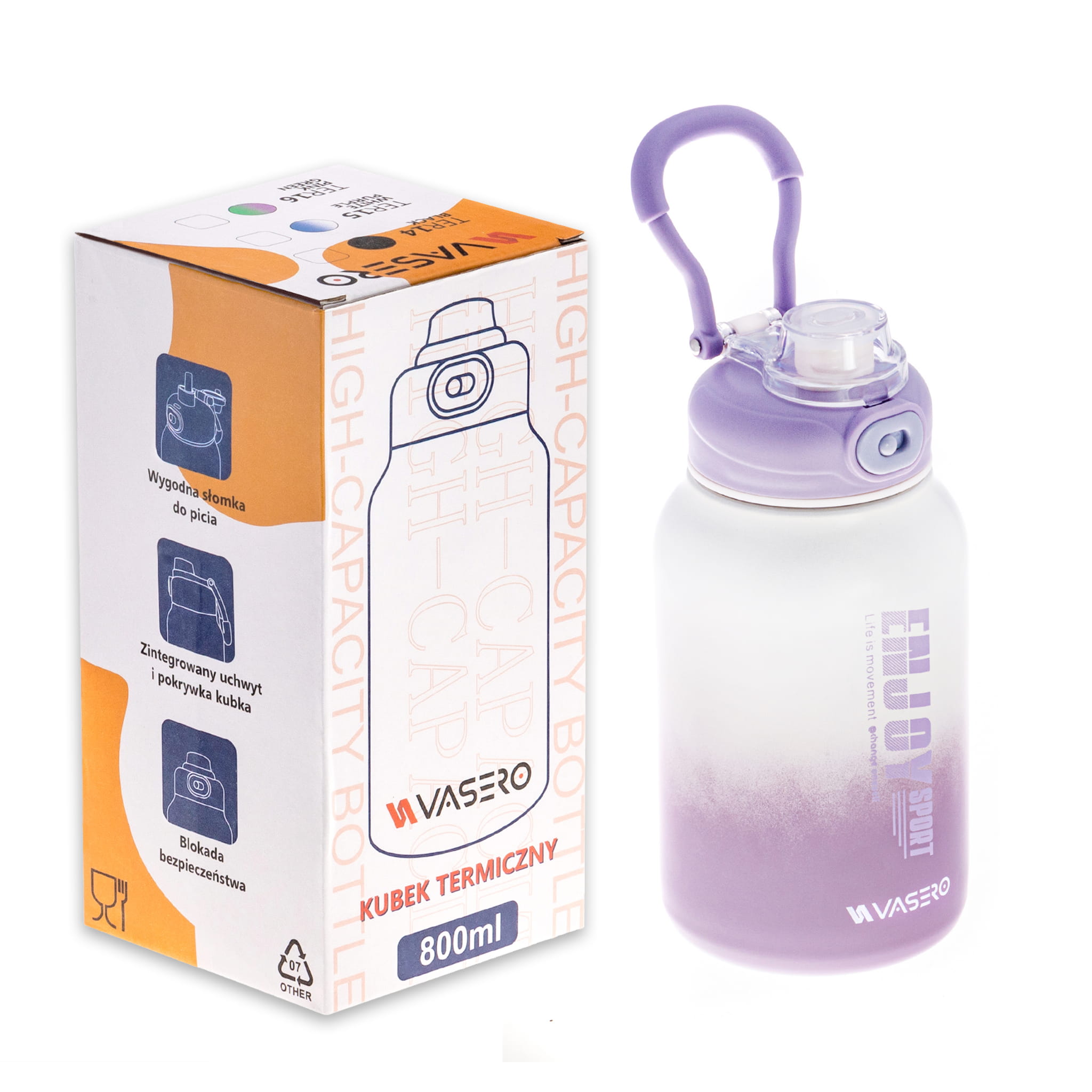 KUBEK TERMICZNY BIDON TERMOS VASERO o pojemności 800ml w kolorze fioletowo białym