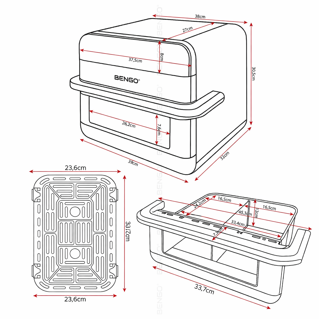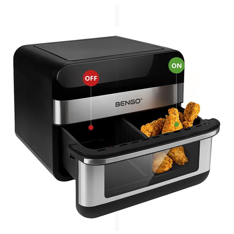 Większość klasycznych piekarników potrzebuje nawet 20 minut, by osiągnąć zadaną temperaturę. Choć niektóre modele nagrzewają się szybciej lub inne wolniej, żaden z nich nie dorówna frytkownicy BENGO®! Jest to idealne rozwiązanie, jeśli cenisz zdrowe, szybkie gotowanie oraz chrupiące potrawy. Piekarnik nigdy nie będzie tak wszechstronny i wygodny – jeśli lubisz różnorodne dania lub liczy się dla Ciebie czas, nasza frytkownica beztłuszczowa będzie Twoim najlepszym kuchennym sprzymierzeńcem!