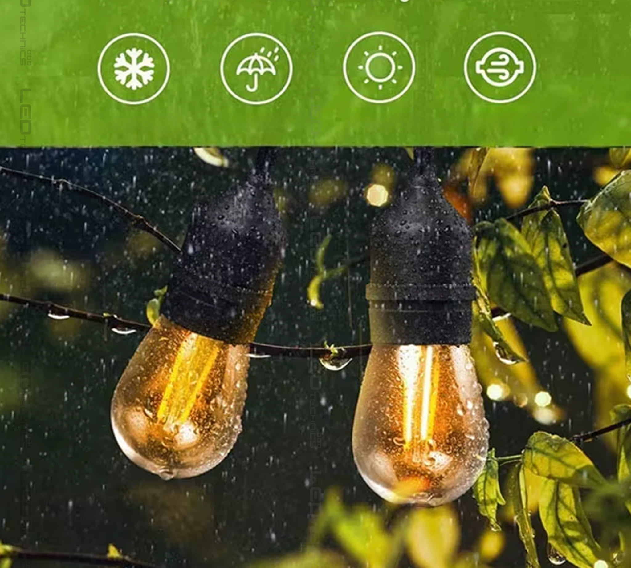 Nasze girlandy są gotowe na każdą przygodę na świeżym powietrzu! Dzięki swojej wysokiej klasie odporności IP65, nie musisz się martwić o deszcz czy wilgoć. Teraz możesz cieszyć się magicznym blaskiem nawet podczas ulewnych dni!