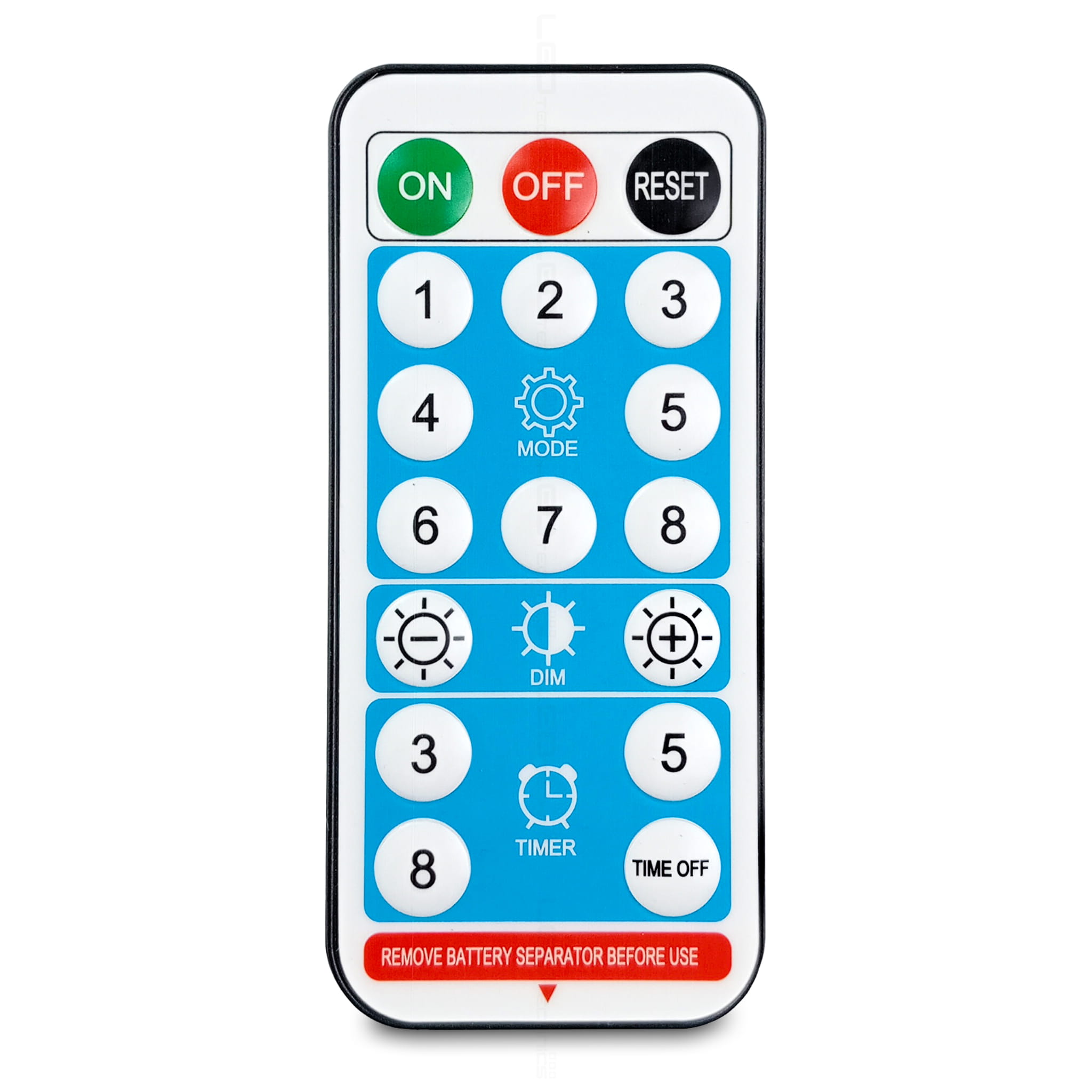 Pilot zdalnego sterowania: Za pomocą pilota możesz nie tylko włączać i wyłączać girlandę, ale również zmieniać tryby świecenia, jasność oraz ustawiać czas pracy.