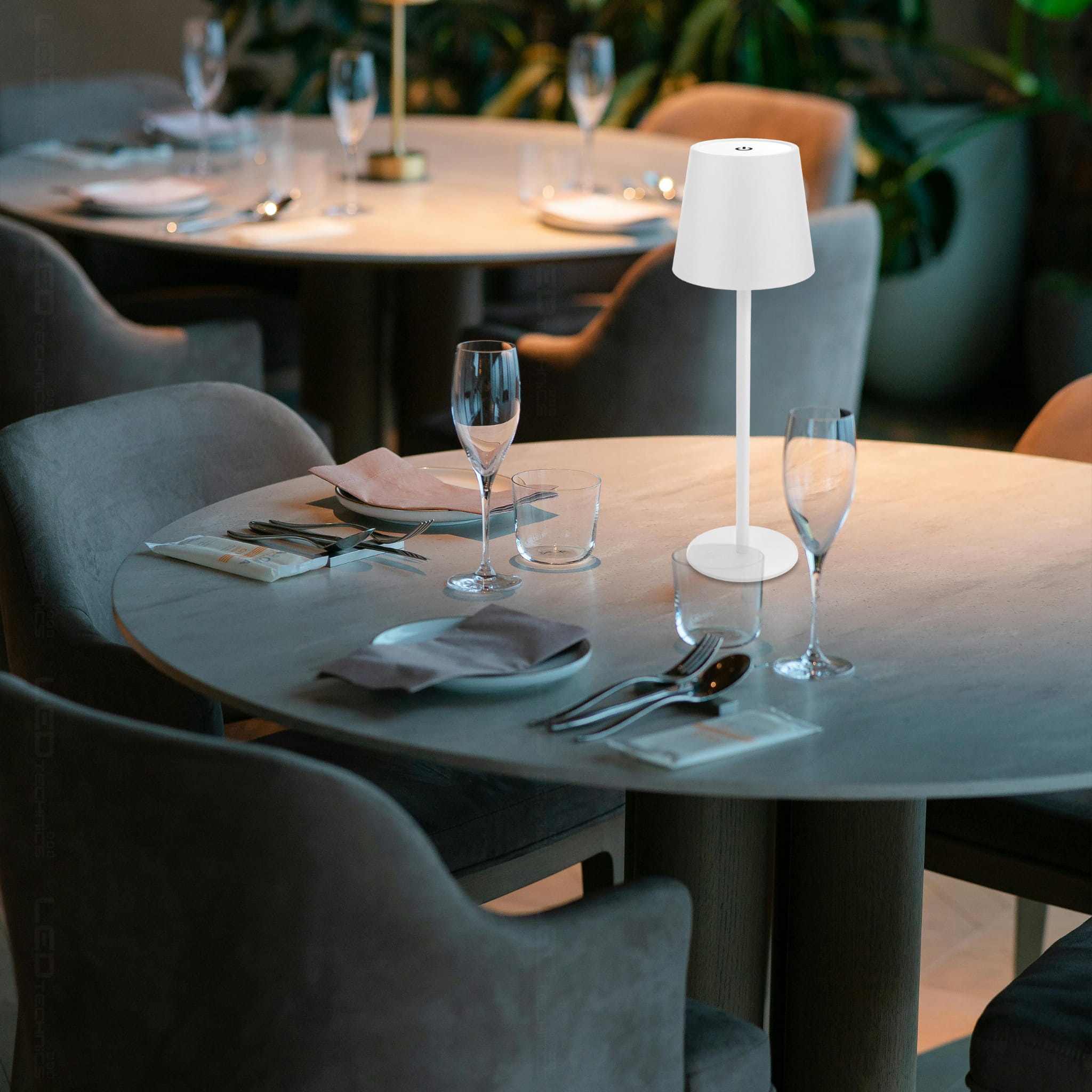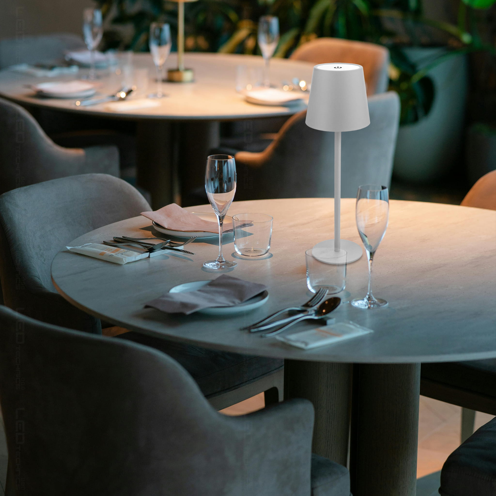 Nowoczesna, ponadczasowa lampka stołowa. Prosty kształt oraz wbudowane diody LED znajdą szerokie zastosowanie jako oświetlenie np. przy łóżku, na stole w restauracji lub kawiarni, w domowej jadalni, na komodzie lub witrynie, w ogrodzie (pamiętaj aby chronić lampkę przez deszczem, zimnem lub upałem) . Brak konieczności ciągłego podłączenia do źródła zasilania pozawala na używanie jej w dowolnym miejscu, a funkcja ścieniania na dobór mocy światła do własnych potrzeb.