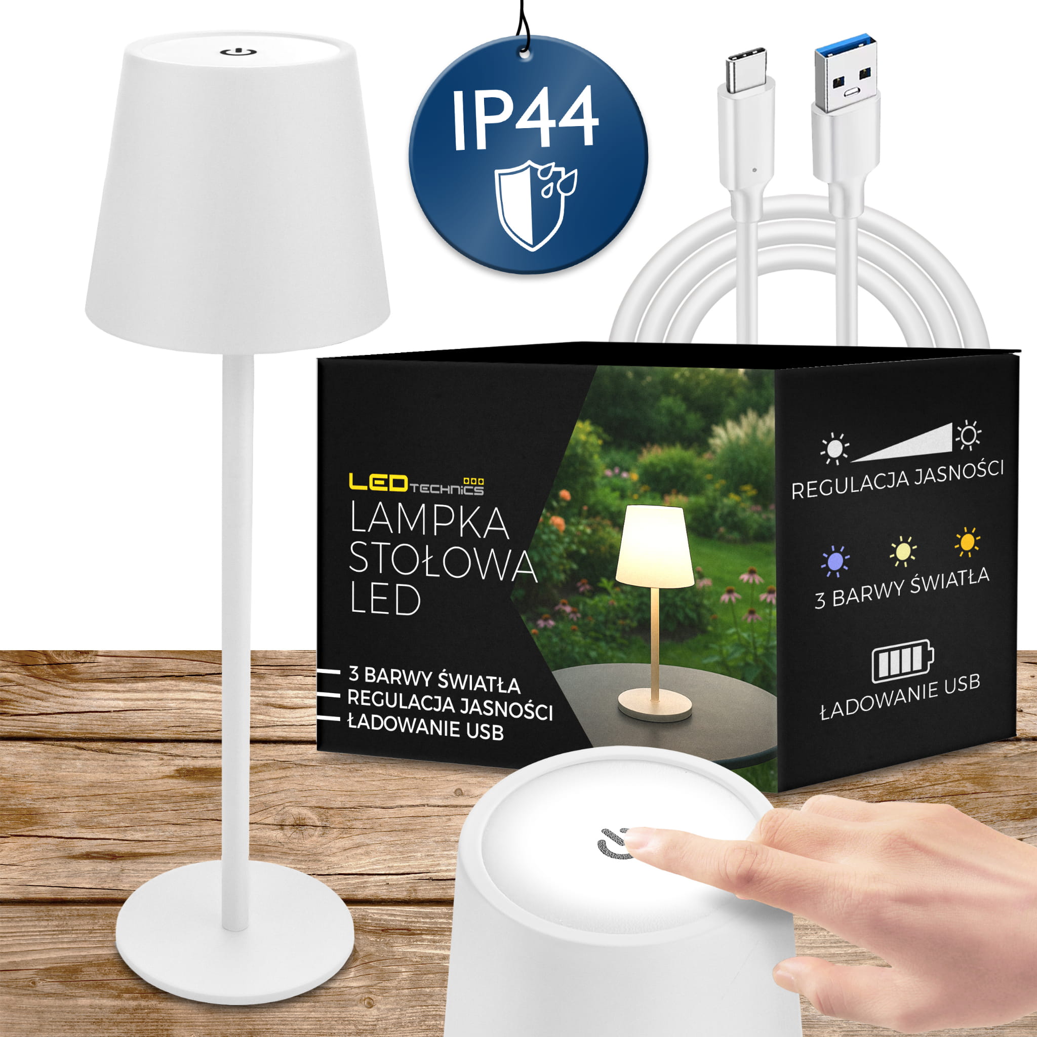 - Wszechstronność zastosowań: Klasa odporności IP44 sprawia, że lampka nadaje się również do użytkowania na zewnątrz, np. w ogrodzie, podczas wieczornych spotkań