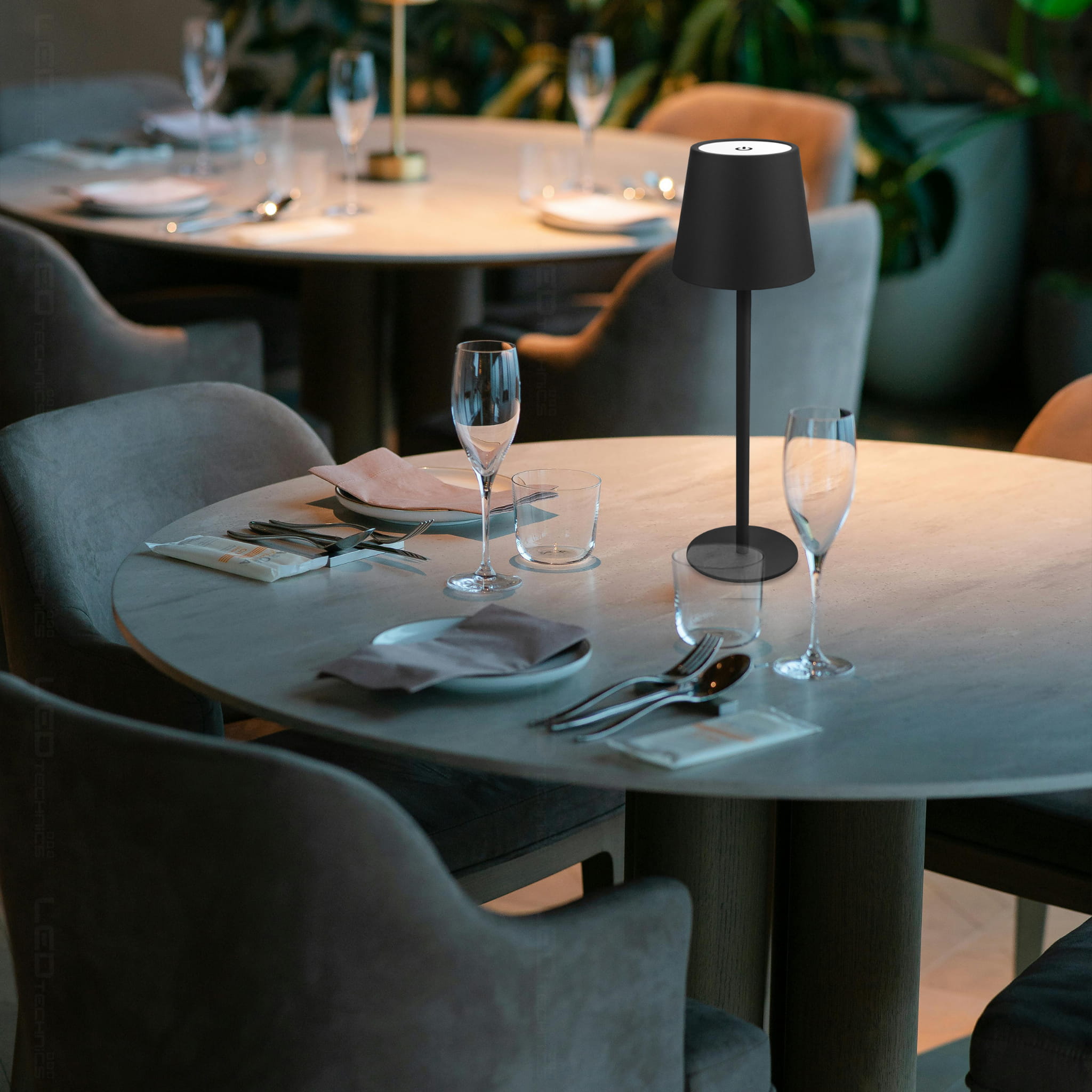 Nowoczesna, ponadczasowa lampka stołowa. Prosty kształt oraz wbudowane diody LED znajdą szerokie zastosowanie jako oświetlenie np. przy łóżku, na stole w restauracji lub kawiarni, w domowej jadalni, na komodzie lub witrynie, w ogrodzie (pamiętaj aby chronić lampkę przez deszczem, zimnem lub upałem) . Brak konieczności ciągłego podłączenia do źródła zasilania pozawala na używanie jej w dowolnym miejscu, a funkcja ścieniania na dobór mocy światła do własnych potrzeb.