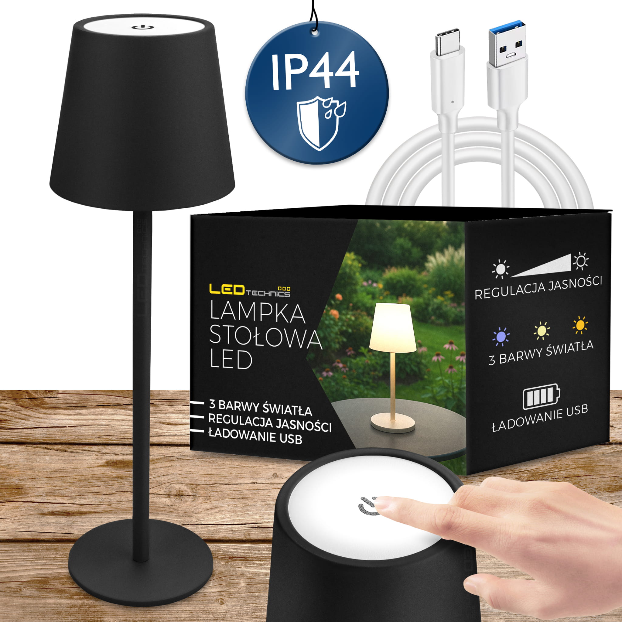- Wszechstronność zastosowań: Klasa odporności IP44 sprawia, że lampka nadaje się również do użytkowania na zewnątrz, np. w ogrodzie, podczas wieczornych spotkań