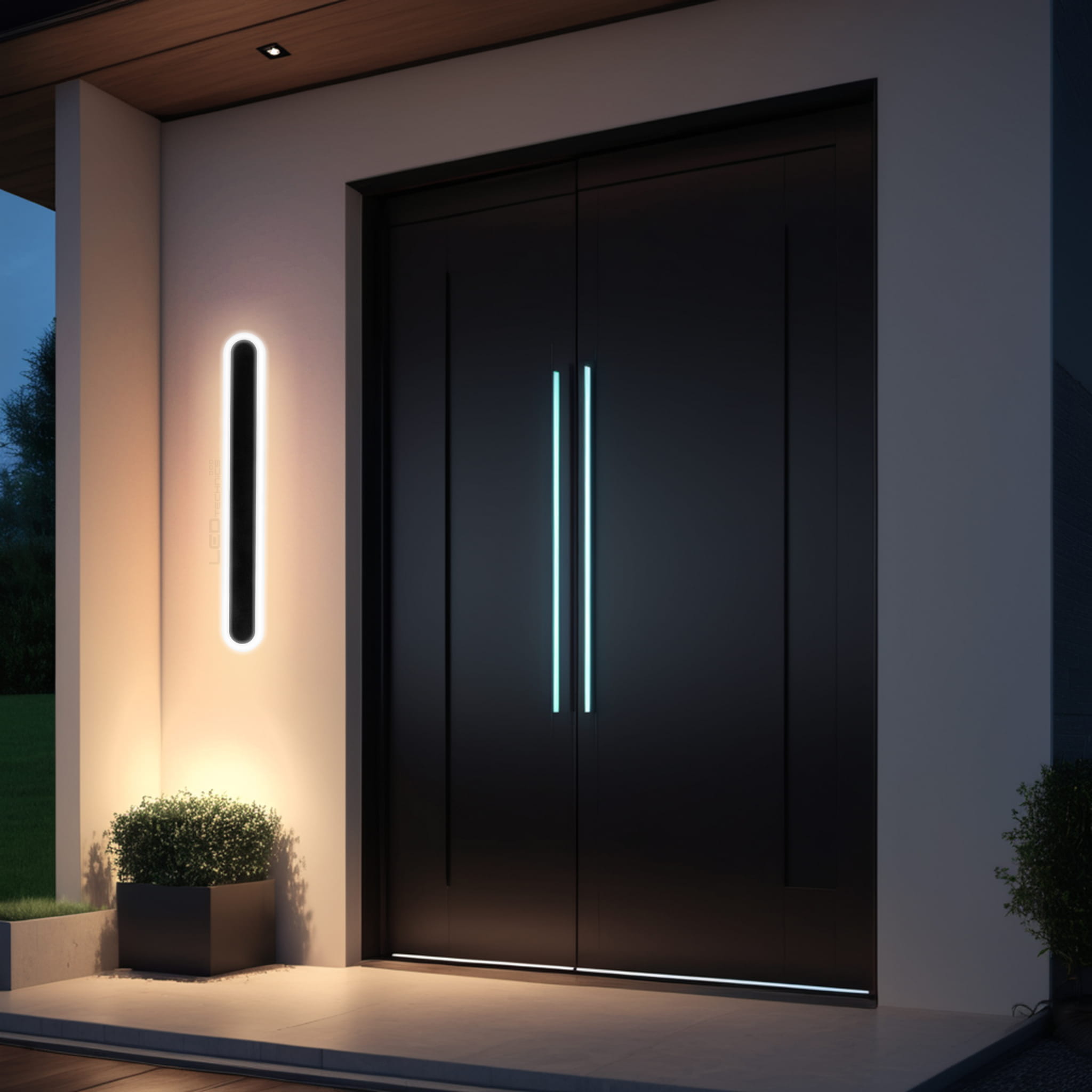 Lampy montowane na zewnątrz najlepiej umieścić pod zadaszeniem, aby chronić od silnych wiatrów lub mocnych deszczów. Należy również pamiętać o odpowiedniemu zabezpieczeniu zasilacza, który znajduje się w podstawie lampy.