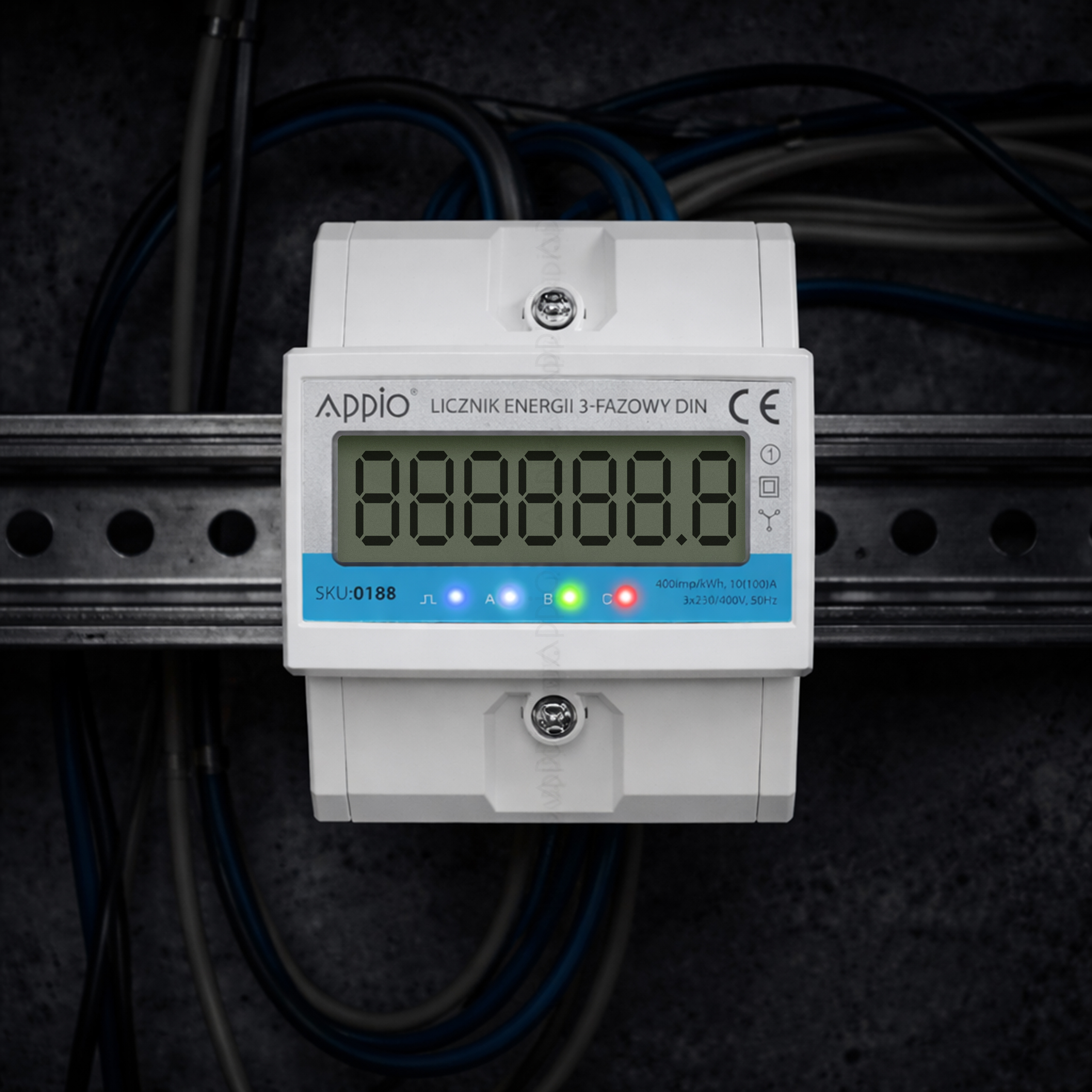 Elektroniczny licznik energii przystosowany do instalacji trójfazowych (4‑przewodowych), monitoruje zużycie energii czynnej w czasie rzeczywistym. Wysoka klasa dokładności zapewnia wiarygodne dane – produkt do użytku domowego, firmowego czy przemysłowego.