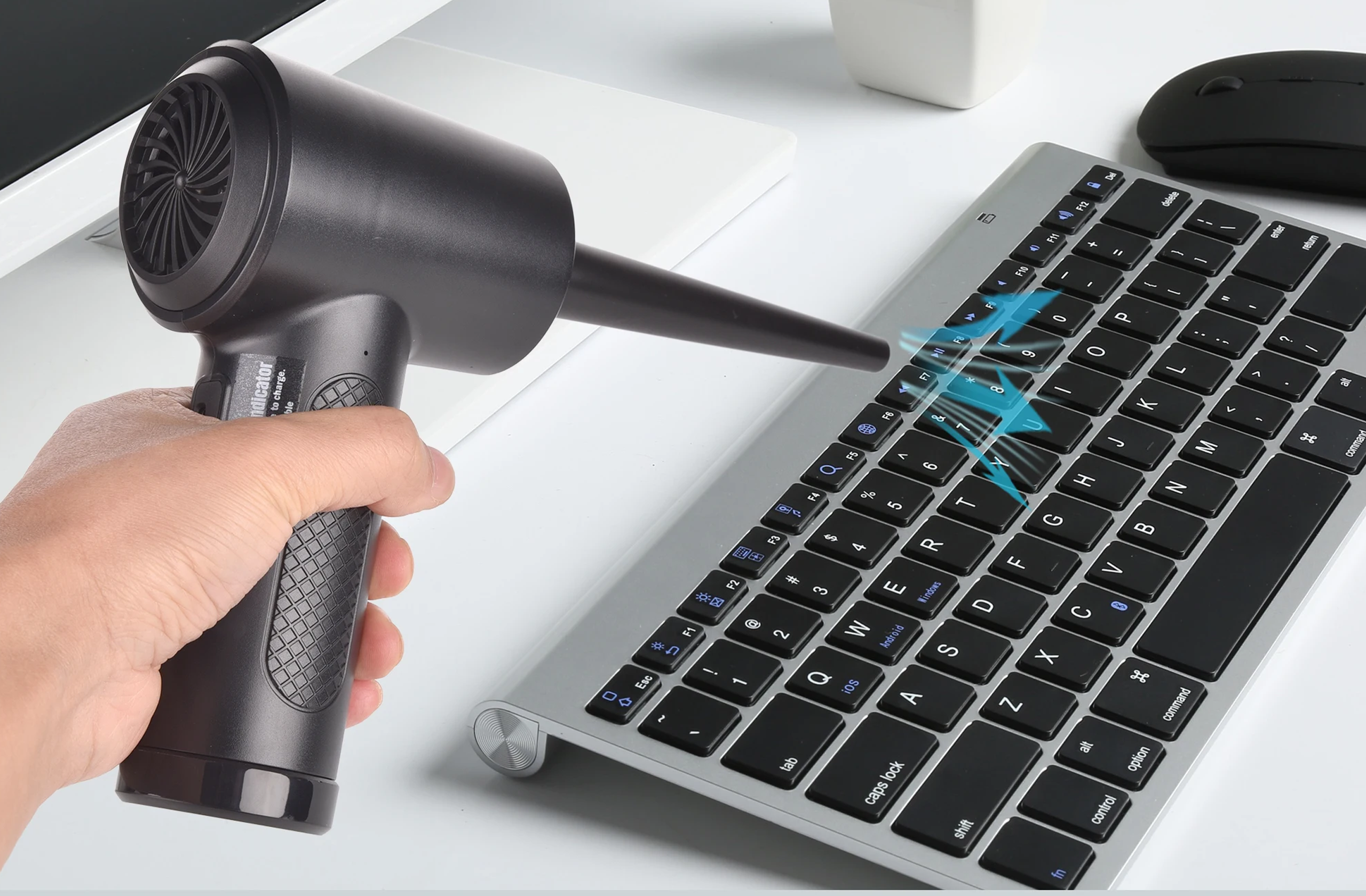 - Do komputerów i szeroko pojętej elektroniki: Najpopularniejsze zastosowanie dmuchawy elektrycznej to usuwanie kurzu, brudu i innych zanieczyszczeń z komputerów, laptopów, klawiatur, myszy, monitorów, drukarek, itp.
