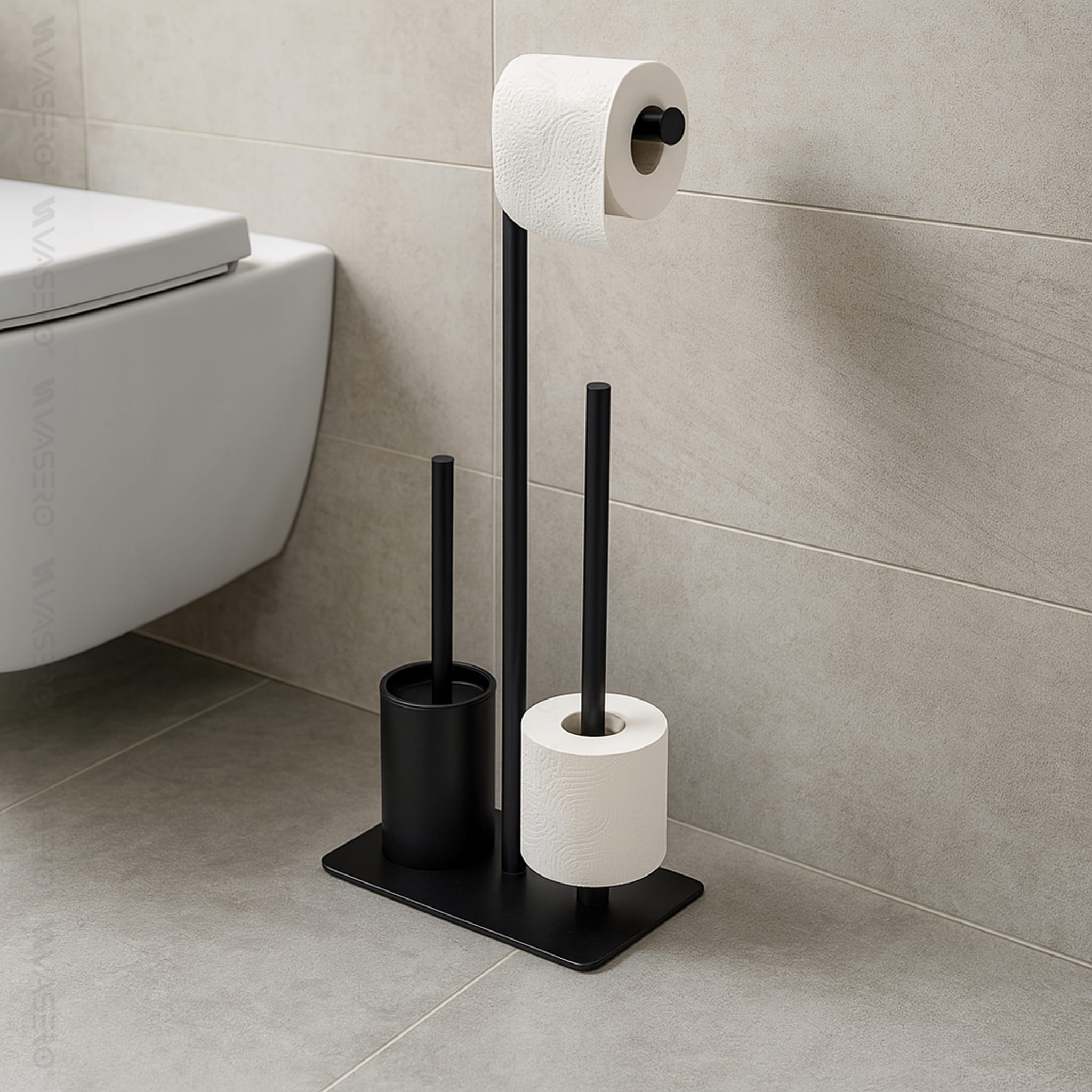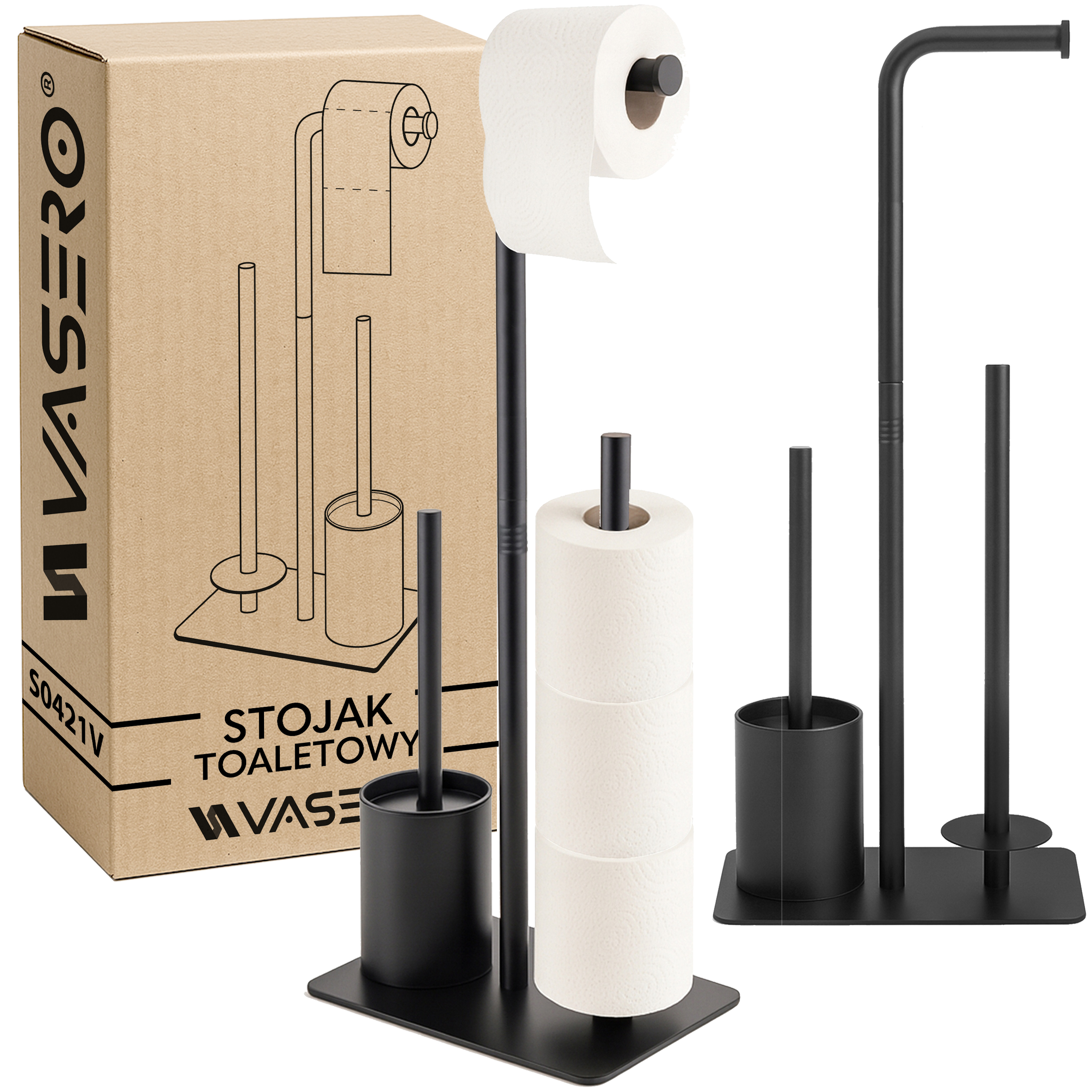 Nowoczesny STOJAK na szczotka metalowy uchwyt na papier toaletowy WC